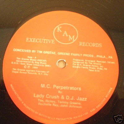 12” HEAR IT Lady Crush & D.J. Jazz KAM 4 M.C. Perpetrators 2 Versions, EX cover in shrink and vinyl is MINT-, other names on the label Tim Greene Green Family Prods., Phila PA, I believe this is a North Carolina based release, Dated 1986
