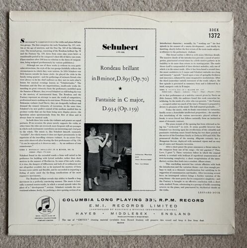33CX 1372 Schubert Rondeau For Violin & Piano Johanna Martzy & Jean Antonietti