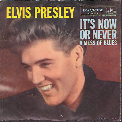 VINYL CONDITION: "IT'S NOW OR NEVER" PLAYS VG+. "MESS OF BLUES" IS POOR.