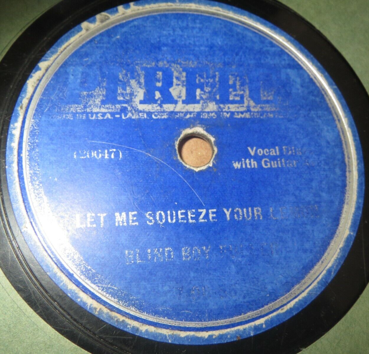 78RPM Perfect 7-06-56 Blind Boy Fuller - Let Me Squeeze Your Lemon / My Baby Don't Mean Me No Good, Poor with CRACK (in pixs) Let Me Squeeze Your Lemon - MELOTONE (1930-1938) - 7-06-56 - 1937-02-10; matrix: 20647=2; ~3 min This c1936-37 rare, this may need a helluva player to handle this--I think--my dad played this on his vintage beast Ge RPG or whatever that is/was--best 78 player--this played through on that (it says on sleeve "played through ok")--looks rough to me won't play with my new needle, worst flaw besides CRACK is some small digs (deep wear) on 1st half of my baby)--the rest appears a decent evenly well worn strong Poor maybe----I heard 3 seconds of this and it sounded VERY NOISY--my player could be ?, please dont complain on condition--this one is Poor condition overall, see photos. Graded visually. Spindle holes and labels have heavy wear especially on lowest part where # is--can barely read the 7-06-56. Will be in the sleeve this has been stored in for decades. This comes from the bigbillkorst2 jazz collection. Please email with any questions. Buy it now for $134.95. FREE shipping via US Media Mail to US addresses. Shipments outside the US will be much more, please inquire for quote. Tariffs/taxes/fees sometimes incurred on international shipments are responsibility of the buyer. Paypal accepted. Please email with any questions. Thank you for looking. 1270 bco Discount does not apply on items purchased by "best offer". Can't apply the discount on records that have already been lowered in price, sorry.