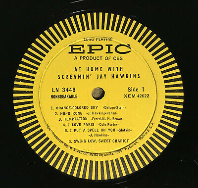 PROUDLY OFFERING FOR YOUR CONSIDERATION TODAY, A MEGA-RARE CLASSIC SCREAMIN' JAY HAWKINS ORIGINAL FIRST 1958 PRESSING TITLED"AT HOME WITH SCREAMIN' JAY HAWKINS" DEBUT LP. THIS IS THE MEGA-RARE EPIC LABEL THAT GOLDMINE VALUES AT $1,000.00 IN NM CONDITION. THIS BABY WAS RECORDED IN HIGH FIDELITY AND IS A BEAUTY!