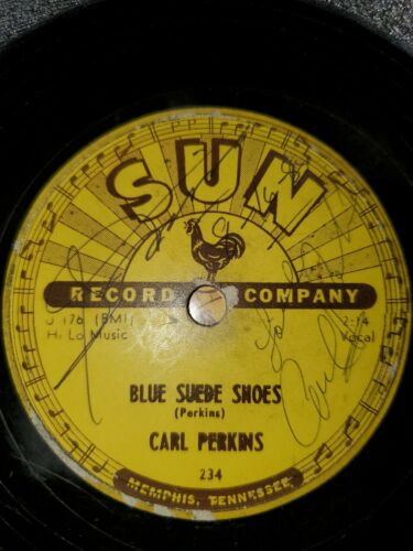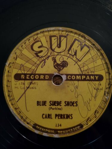 AUTOGRAPHED 78 RPM Carl Perkins Blue Suede Shoes & Honey Don't Sun 231 '56. Condition is Used.
