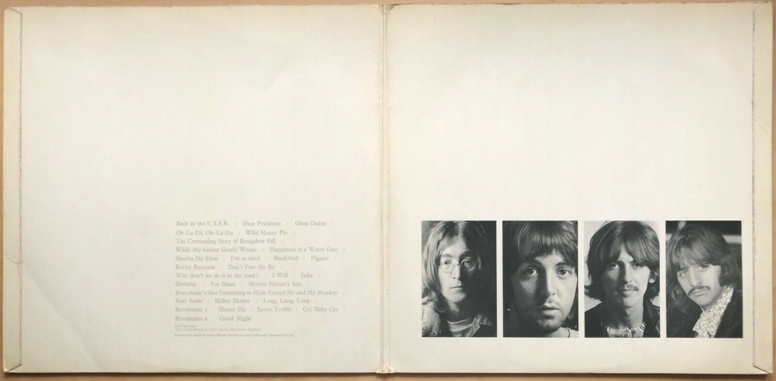 - VINYL = GENERALLY VERY GOOD , PLAYS THROUGH VERY WELL WITH JUST A FEW LIGHT CLICKS IN BETWEEN TRACKS ,BUT DOES HAVE A REPEAT AND SKIP ON THE TRACK ' CRY BABY CRY '