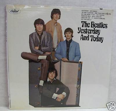 YES INDEED THIS IS A 1966 ORIGINAL MONO US SEALED BEATLES' BUTCHER COVER WITH THE 'TRUNK COVER' PASTED OVER THE TOP OF THE NOTORIOUS ORIGINAL ARTWORK!!!! THIS, ALONG WITH THE 'BEATLES' STORY' WE ALSO HAVE LISTED, CAME FROM A PRIVATE COLLECTION LOADED WITH SEALED 60'S LP'S. THIS PASTE-OVER WAS ORIGINALLY PURCHASED BY OUR CUSTOMER/SOURCE FOR THE COLLECTION, FROM THE ONE-AND-ONLY PERRY COX. DESPITE THIS, AND THE FACT THAT I PERSONALLY HAVE HAD 100'S OF PASTE-VERS IN VARIOUS 'STATES', I HAD SOME QUESTIONS ABOUT IT. WHILE IN AUSTIN AT THE BEGINNING OF OCTOBER I HAD A MY FRIEND AND BEATLES' EXPERT PAR-EXCELLANCE JIM HANSON FROM 'BLUE JAY WAY' LOOK IT OVER WITH AN EXPERT EYE, AND HE CLARIFIED A NUMBER OF FACTS RELATIVE THIS PARTICULAR COPY. MY FIRST QUESTION, THERE ARE NO TYPICAL PENCIL-ERASER SIZED BREATHE HOLES AND THERE IS A PIN-HOLE IN THE UPPER RIGHT. ALL PROPER AS IT TURNS OUT, A MATTER OF SEVERAL FACTS THAT LEFT ME THINKING "WELL, DUHHH." WHEN CAPITOL DELETED IT'S MONO CATALOG IN LATE 1967 OR THEREABOUTS, THEY RECALLED MONO PRODUCT FROM DISTRIBUTORS AND THEREFORE FROM SHOPS WHO DUTIFULLY RETURNED MONO LP'S FOR CREDIT. CAPITOL THEN PUNCHED THEM ALL AND WHERE NECESSARY RE-SEALED THEM TO BE SHIPPED BACK OUT AS CUT-OUTS. THE RESEALED SHRINK WAS NOT NECESSARILY THE SAME AS THE ORIGINAL SHRINK, AND THESE PIN-HOLE COPIES OF "YESTERDAY AND TODAY" AND/OR ANY OTHER CAPITOL LP ARE TOTALLY LEGIT. IT'S A CUT-OUT! UNHEARD OF EXCEPT FOR AND UNTIL "LET IT BE", AND ONLY DUE TO THE DELETION OF 'MONO'. WHILE IN NEW YORK LAST WEEK I SHOWED IT TO GARY JOHNSON OF ROCKAWAY WHO CONCURRED AND TELLS ME THAT THE PIN-HOLE COPIES ARE WELL KNOWN. SO! THE SHRINK IS ABSOLUTELY ORIGINAL TO THE MONO RECALL.