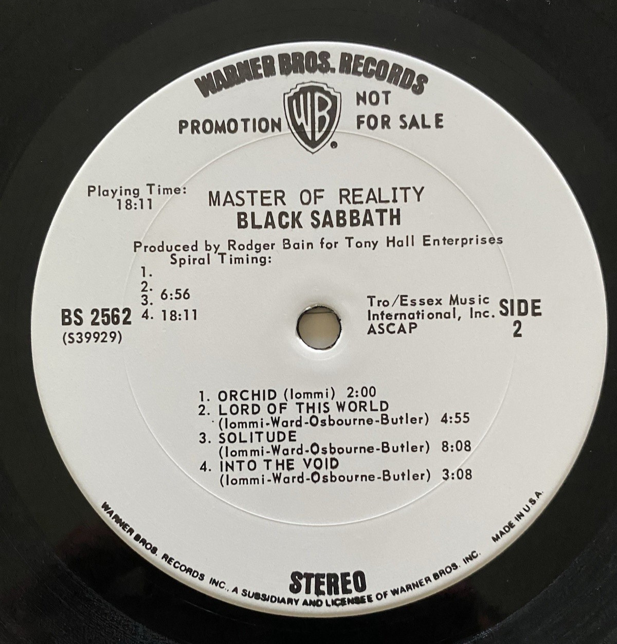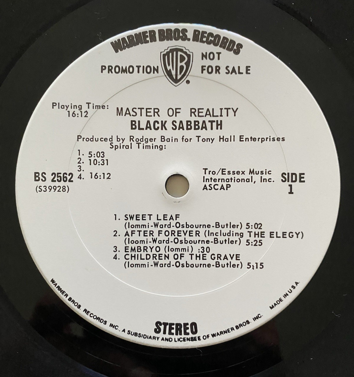BLACK SABBATH MASTER OF REALITY HARD ROCK METAL WHITE LABEL PROMO OZZY OSBOURNE