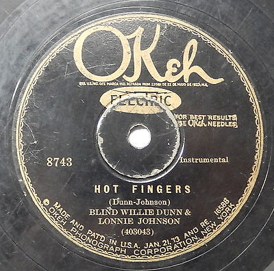BLIND WILLIE DUNN & LONNIE JOHNSON Hot Fingers 78 Okeh 8743 RARE PRE-WAR BLUES