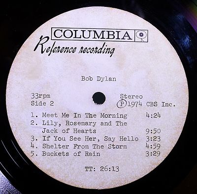 · BOB DYLAN - BLOOD ON THE TRACKS – ORIGINAL 1974 COLUMBIA RECORDS STEREO LP (NO NUMBER ON THE LABEL AND NO MATRIX STAMP -- ACETATES TYPICALLY DO NOT HAVE MATRIX STAMPS)