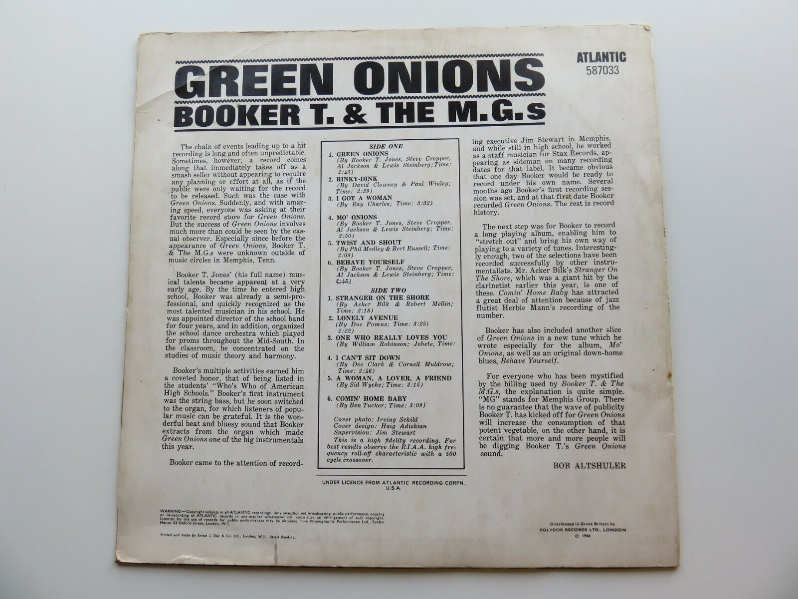 BOOKER T & THE M.G.s 1966 UK LP GREEN ONIONS