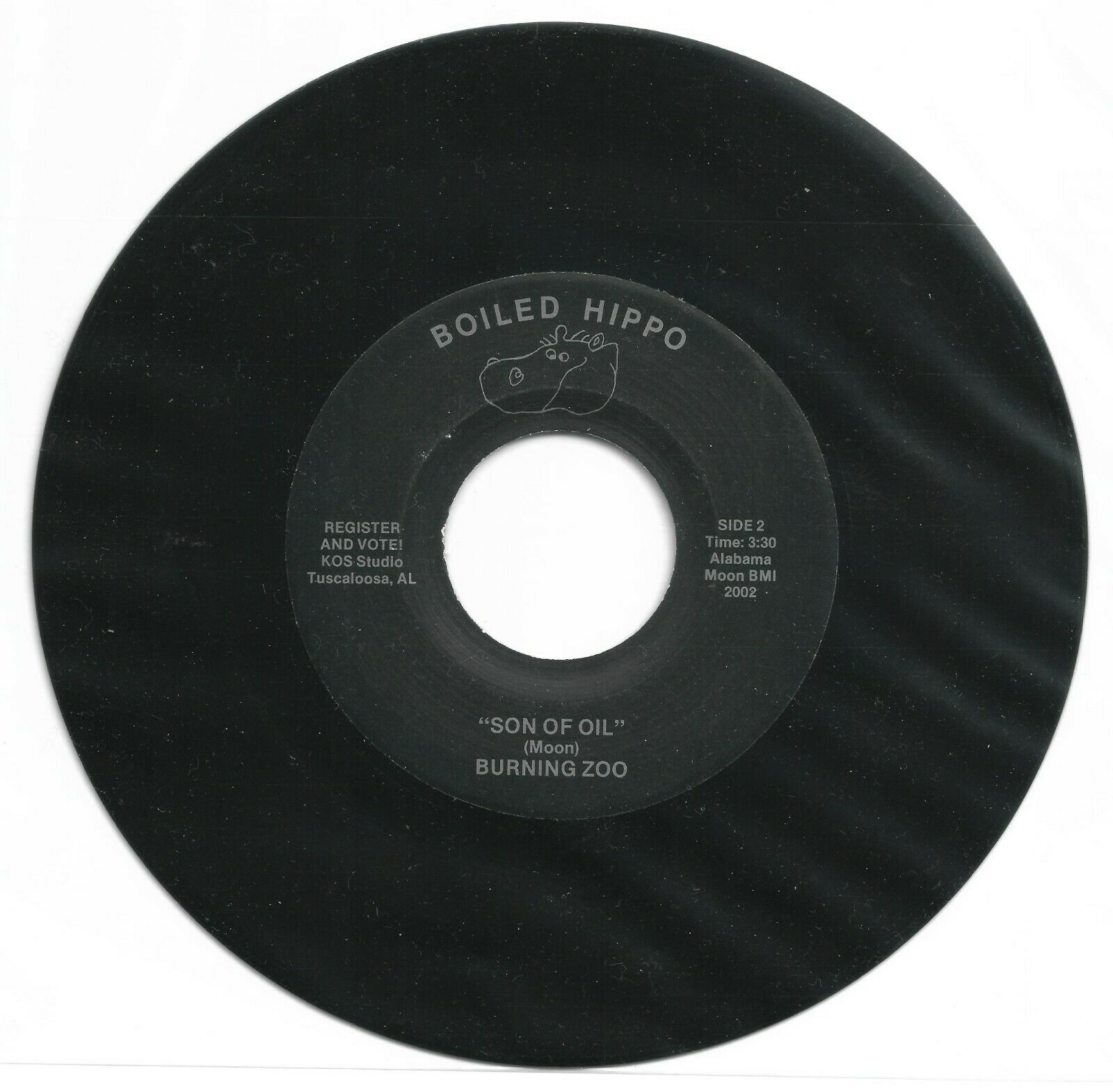 This is a fine copy of the RARE sole 45 by Alabama group Burning Zoo, released in the mid-late '80s on the Tuscaloosa based Boiled Hippo label. The a-side is a crunchy pop-punk party anthem, while the b-side is high-energy, keyboard driven new wave. The disc is clean with a couple of scuffs on side A, and plays with some light surface noise in the lead-in grooves to both sides, but otherwise with minimal to no audible surface noise (EX+). The record comes in a generic white sleeve.