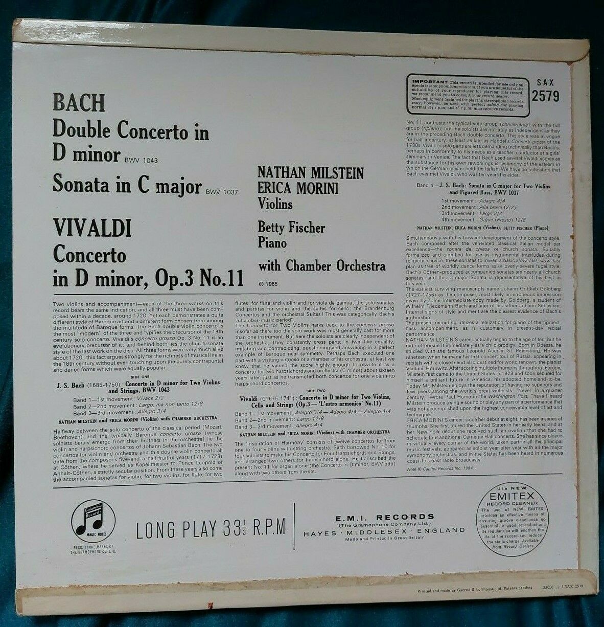 Bach / Vivaldi double Cto & sonata Milstein / Morini Columbia sax 2579 S/C ed1