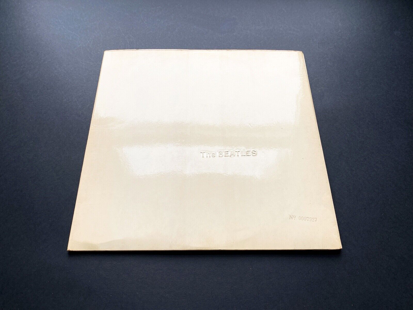 Condition: This is a stunning condition complete NEAR MINT set. Both discs are super-glossy and clean without scratches or marks when viewed both natural light and also direct halogen spotlight. Beautiful! Both discs sit completely flat on the turntable with no warping. Both grade as NEAR MINT!! All tracks across the whole double album play through without issue, with that full punchy first-press audio, obviously there are no skips or sticks, repeat clicks or loud obtrusive pops with this grade. Quiet tracks like ‘Dear Prudence’, ‘Mother Nature’s Son’, and ‘Blackbird’ which are the litmus test for the white album all play beautifully without issue. The audio grades NEAR MINT!! The very low numbered No. 0007927 sleeve is also in top condition. Nice and clean bright creamy white colour, glossy front without ring wear, perfect spine - so often the hardest test for a white album sleeve. Clean insides and back without issue. It's a beauty! There are no light marks or light stains anywhere, or fault to find. It grades as NEAR MINT! The set is complete with both original black inners that remarkably do not have any splits or small tears, NEAR MINT! All four photos are NEAR MINT! with original rare photo spacer. The large fold out lyrics poster has no tears, pen, stains, tape or pin marks, NEAR MINT! This comprises a great listening and collectable complete full set 1st UK mono press of a Beatles classic with remarkably low sleeve, No. 7927 in top condition!