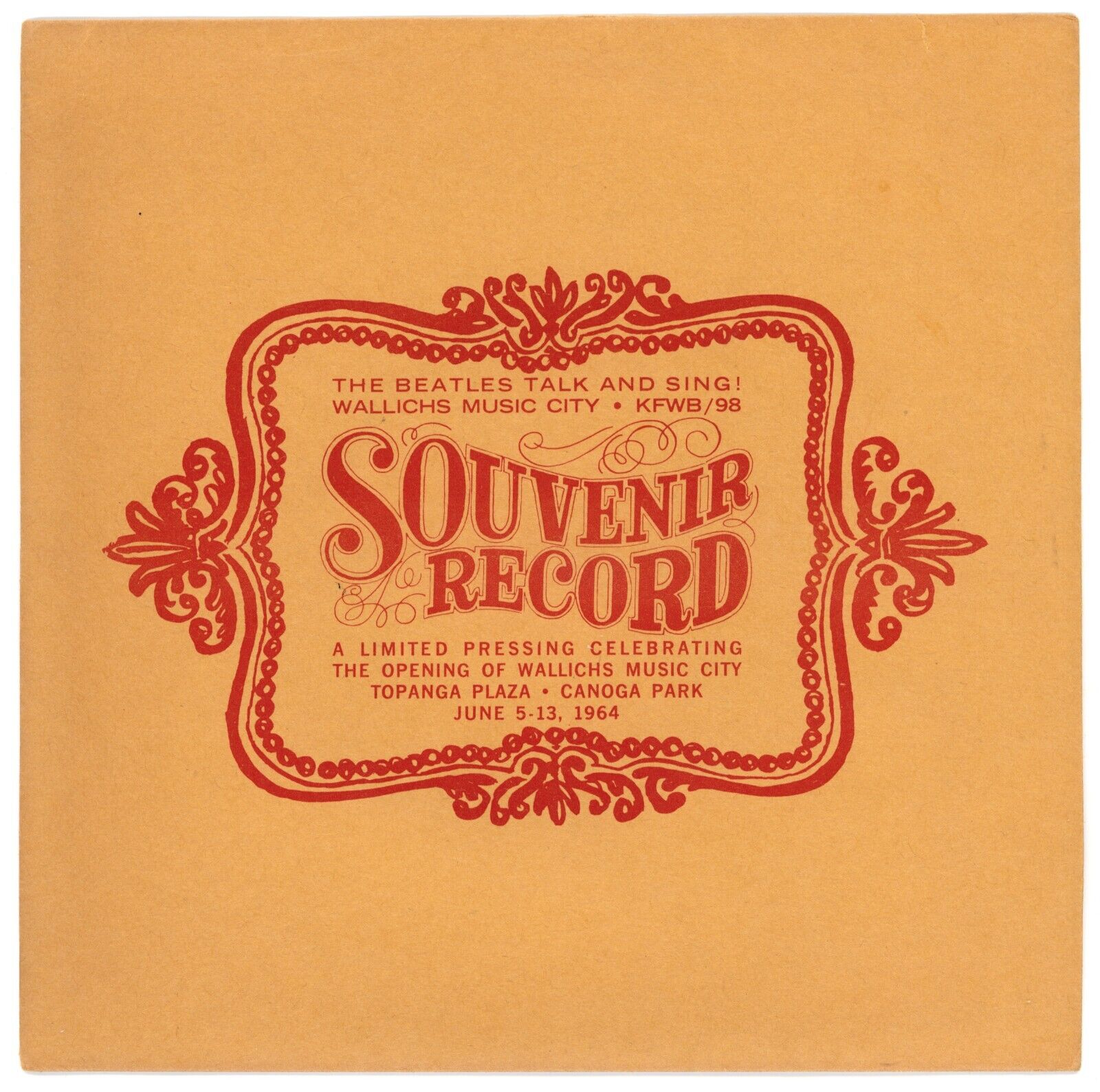 According to the sleeve's cover, "The Beatles Talk and Sing! Wallichs Music City KFWB/98 Souvenir Record, A Limited Pressing Celebrating the Opening of Wallichs Topanga Plaza Canoga Park June 5-13, 1964."