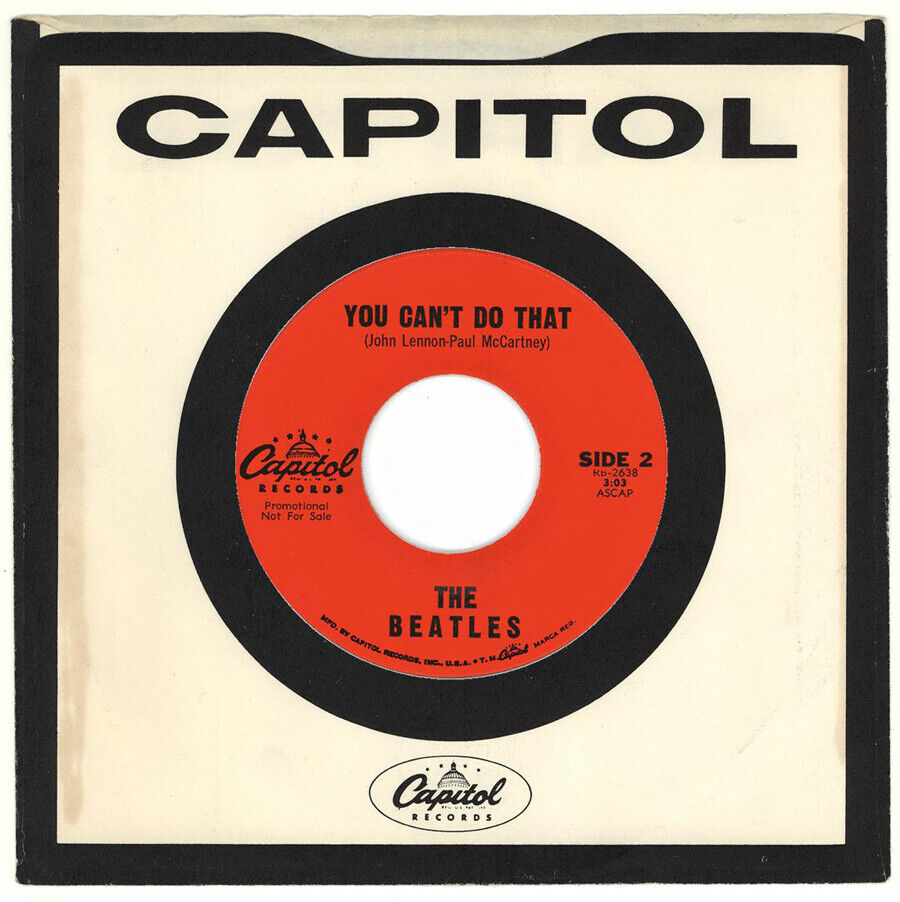 With an A-side featuring audio from the Fab Four and a B-side featuring "You Can't Do That" in mono, the record was made in Los Angeles at Capitol's pressing plant (a plant that did not make very many of the Beatles' records).