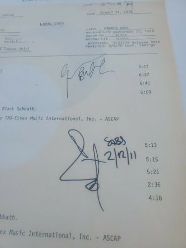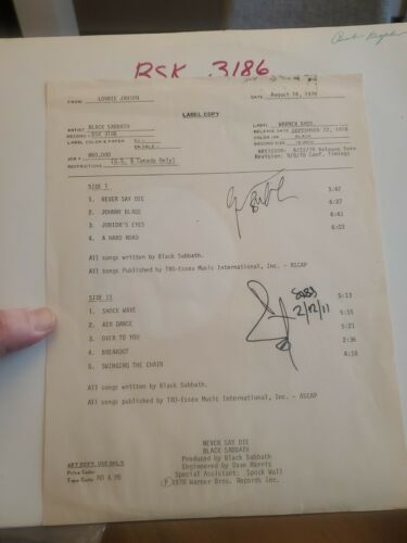 Black Sabbath Never say die Warner LP USA Test Press Signed Ward Butler rare
