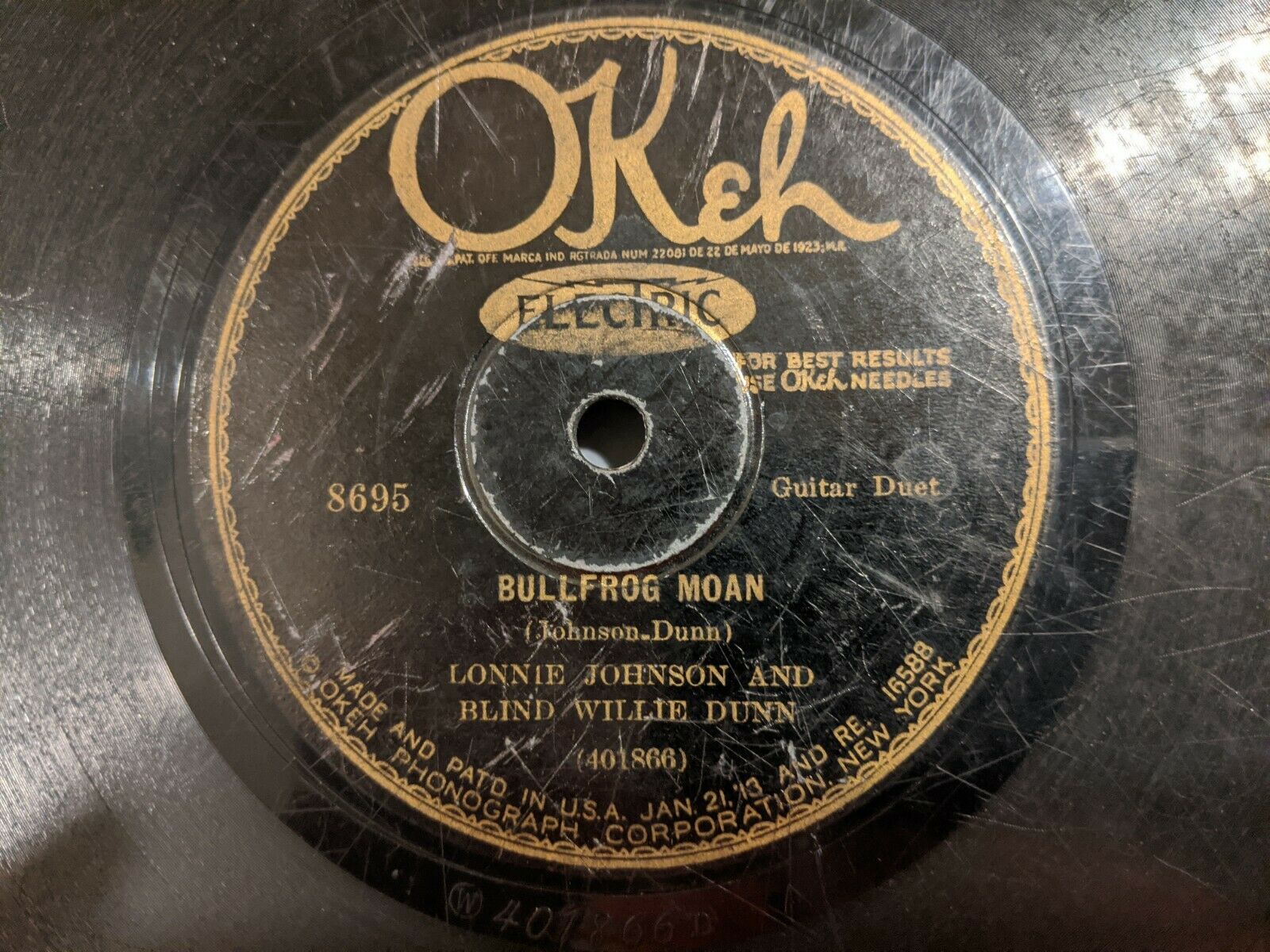 Blind Willie Dunn Lonnie Johnson Okeh 8695 Bullfrog Moan Rare Blues Jazz 78