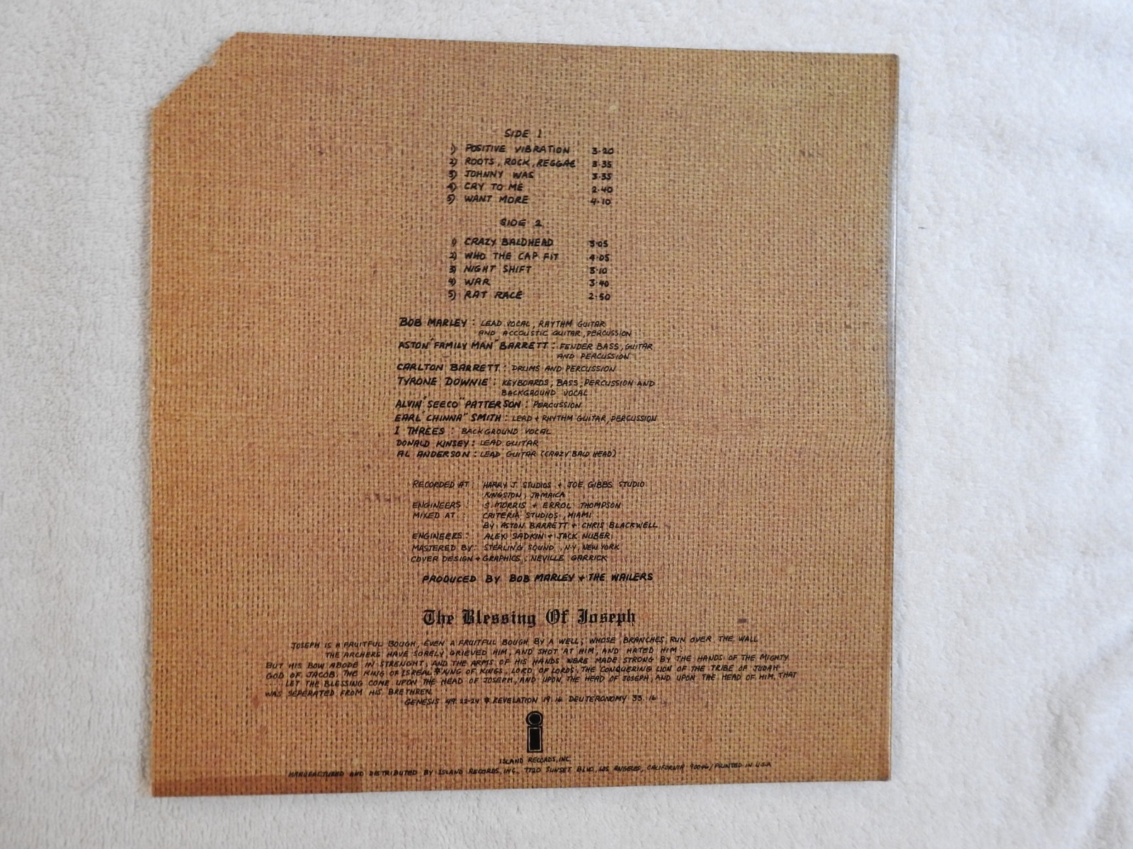 Given to me directly by Chris Blackwell in 1976.