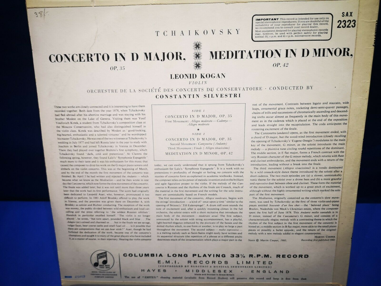 @COLUMBIA SAX 2323 *BLUE/SILVER* LEONID KOGAN* TCHAIKOVSKY VIOLIN CTO* SILVESTRI
