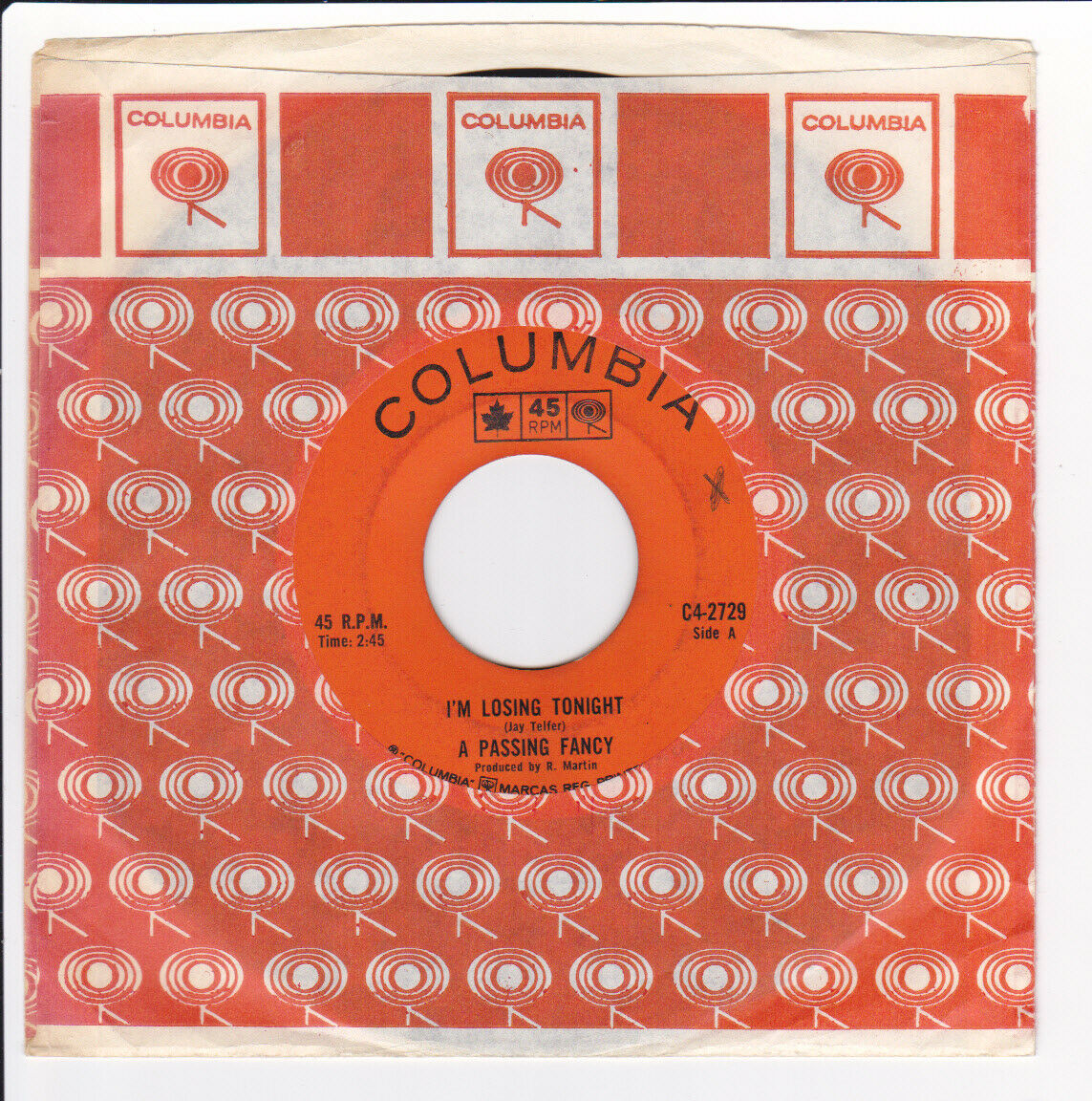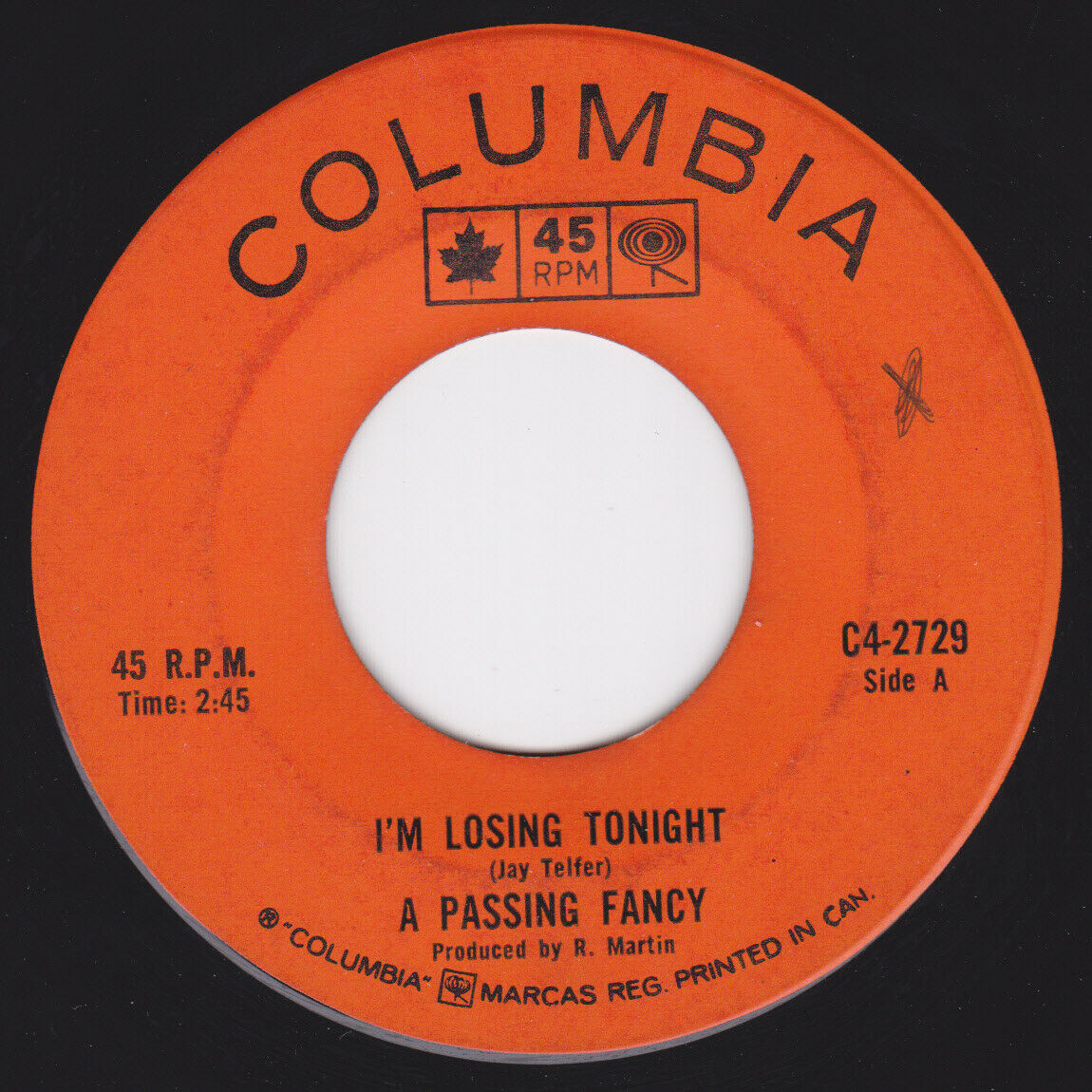 Canada Garage Punk 45 - A PASSING FANCY - I'm Losing Tonight / A Passing Fancy
