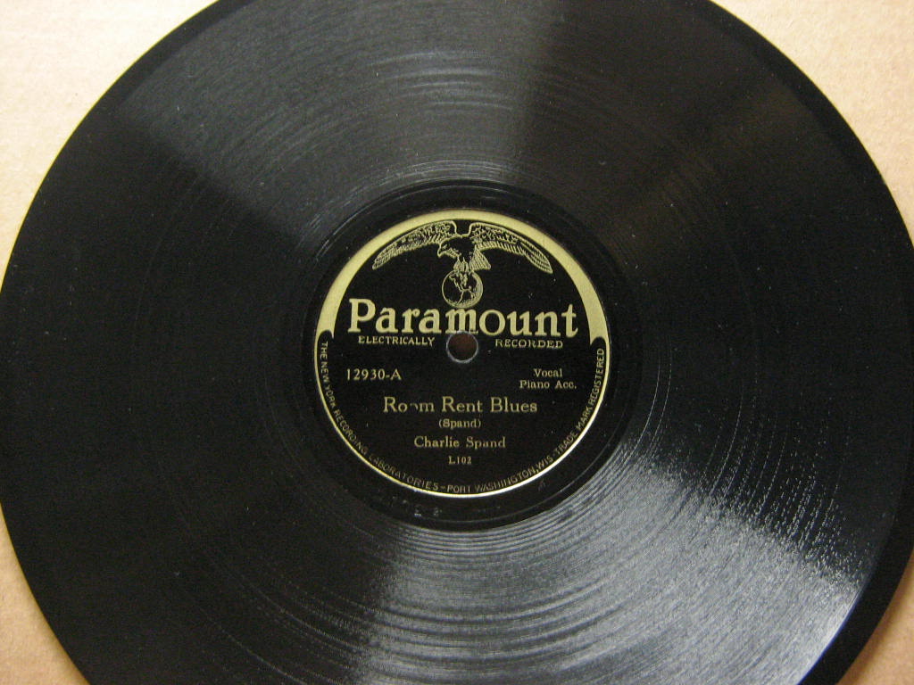 Charlie Spand on Paramount 12930 in "E+" condition. One of the truly great piano blues records. Finest known condition copy. One of the rarest of all Paramount "L" masters. Supremely supurb. Supremely desired. It is highly unlikely that you will ever see this masterpiece listed for sale again.