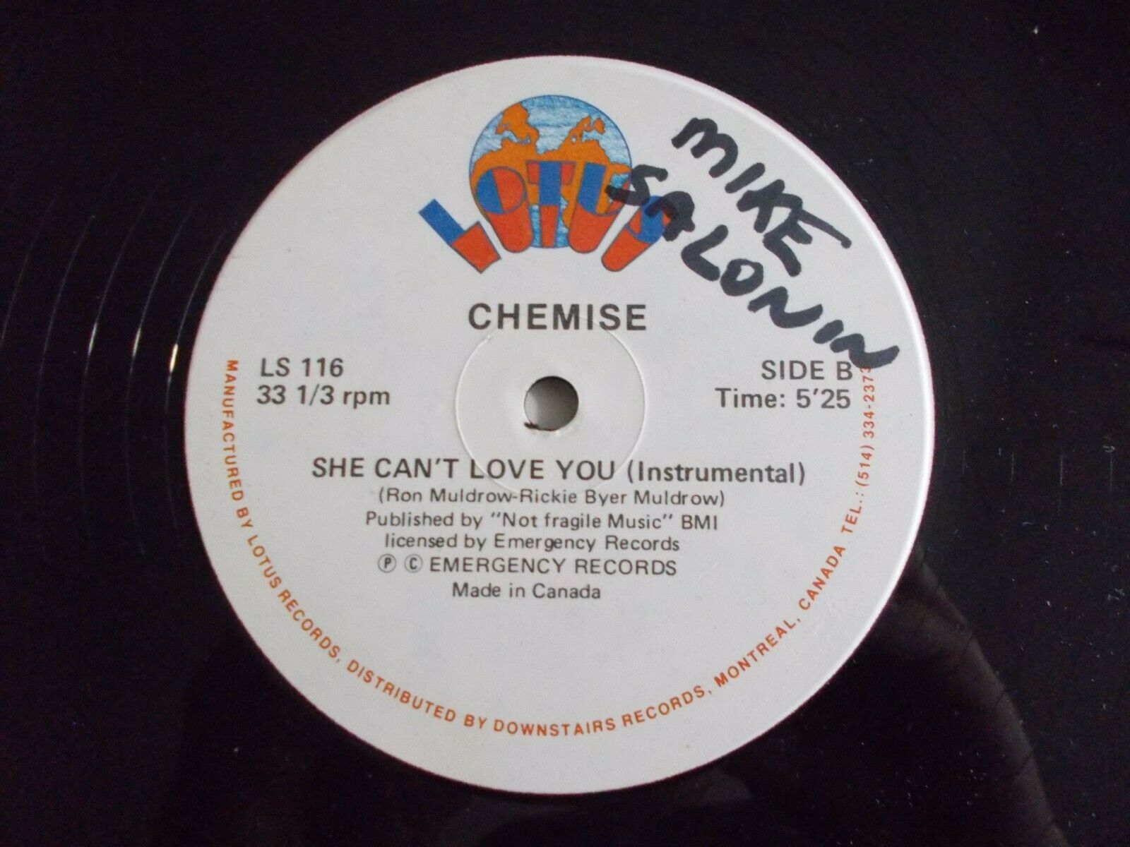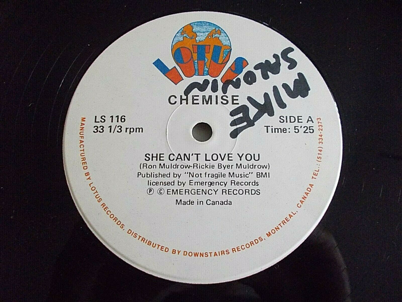 Chemise She Can’t Love You 12” Single 1982 Lotus Canada Vinyl Record