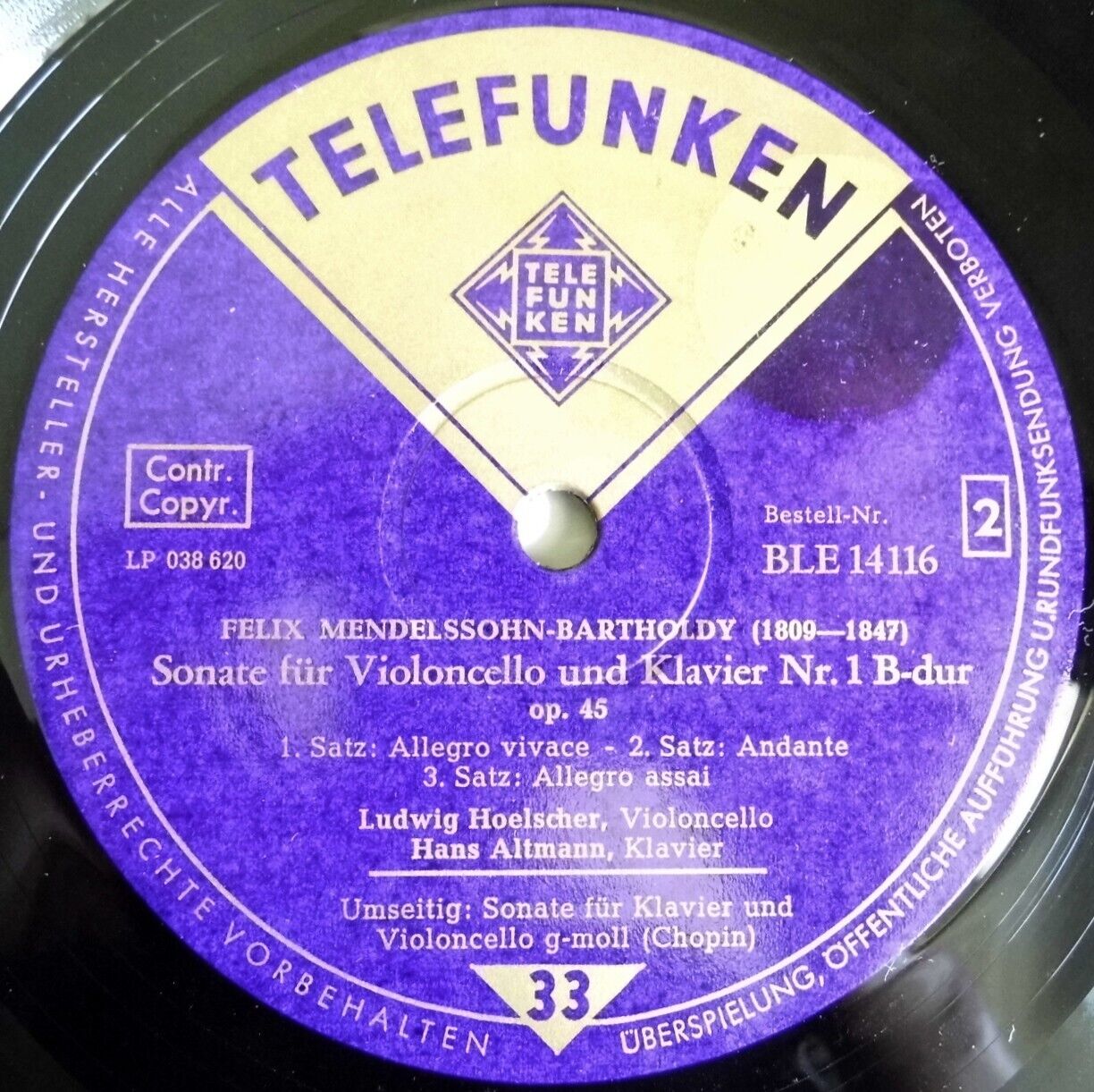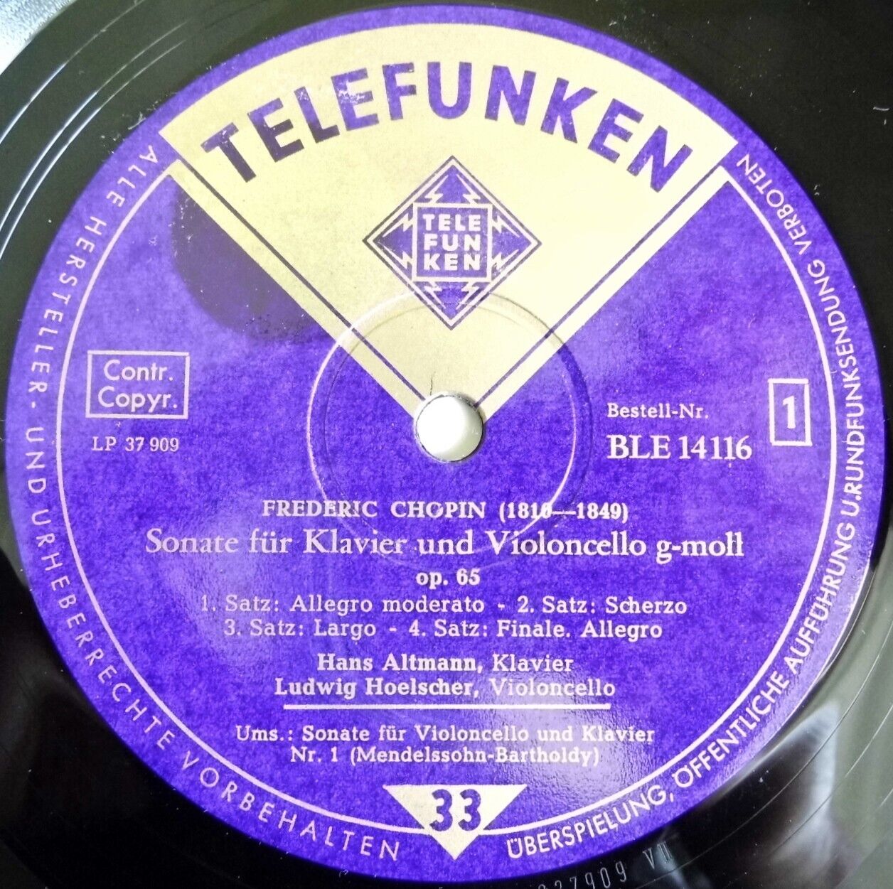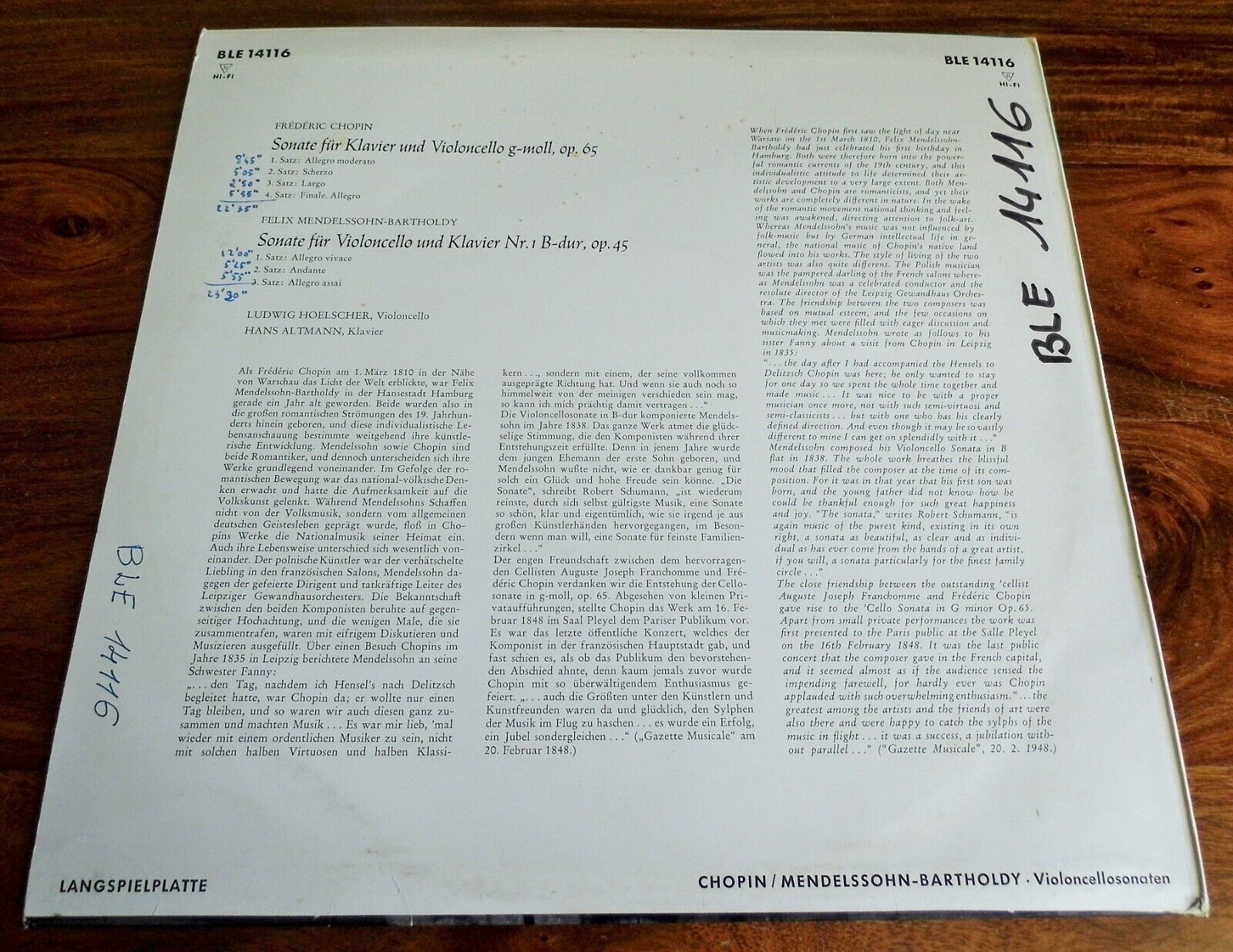 Chopin / Mendelssohn: Sonatas - Ludwig Hoelscher **Telefunken BLE 14116 ED1 LP**
