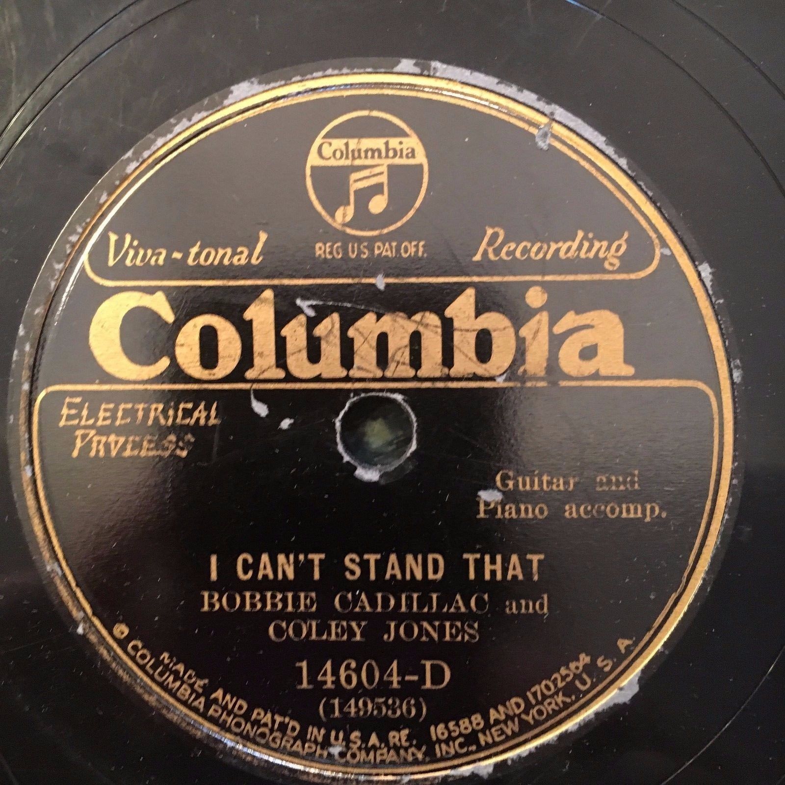 Columbia 14604D Bobbie Cadillac & Coley Jones CAN'T STAND THAT Dallas 29' 78 rpm
