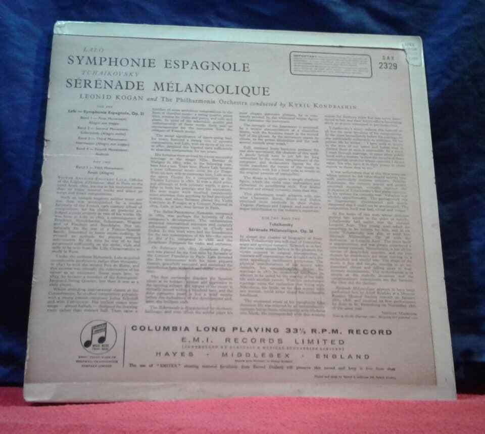 Columbia SAX 2329 Symphonie Espagnole Leonid Kogan Kondrashin Lalo Tchaikovsky