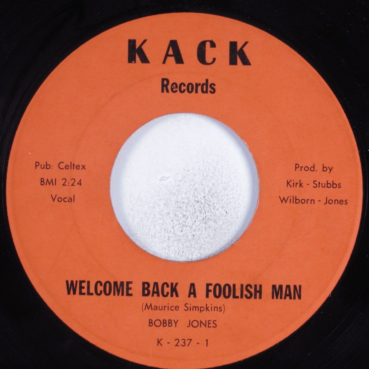 Crossover Soul 45 BOBBY JONES Welcome Back A Foolish Man KACK HEAR