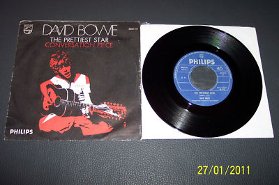 DAVID BOWIE THE PRETTIEST STAR ITALY 7" P/S PHILIPS 6052 011 WITH RARE BLUE LABEL AND FACTORY STAMPED MATRIX NUMBERS.