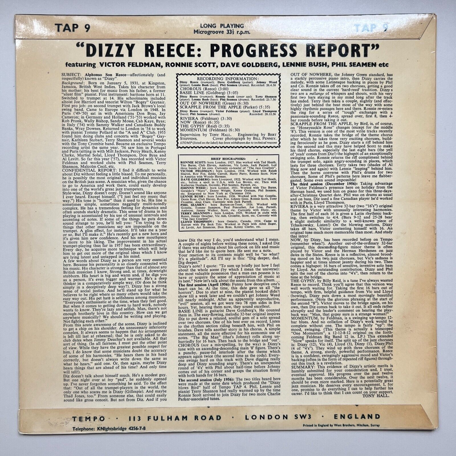 Dizzy Reece - Progress Report. TAP 9. 1957 UK LP TEMPO EX/NM