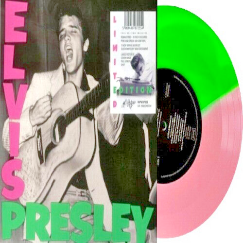 ERR Brings You, a very cool UK Exclusive Collectible... The Hillbilly Kat's Original 1956 US Debut LP, self-titled, "ELVIS PRESLEY" #1254, Pressed On SPLIT PINK & GREEN Vinyl!! WOW!! Limited Edition of Only 800 Pressed in England, December 2022! So Limited that the label only allowed ONE Copy per order & immediately SOLD OUT!! All tracks & artwork Remastered from Original Masters! 180 Gram Vinyl! 45 sized 7" 16-Page Booklet!! Oversized Poster of the Original Full-Length Picture from the LP Cover!!! Kick-Ass Hype Sticker! Note: due to enclosed memorabilia, the 10'' was not 'sealed', but housed in a 10'' poly cover. AMAZING!! Here's the label's press release...