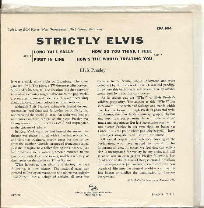 THIS IS A ELVIS PRESLEY 45 EP WITH COVER TITLED " STRICTLY ELVIS ".
