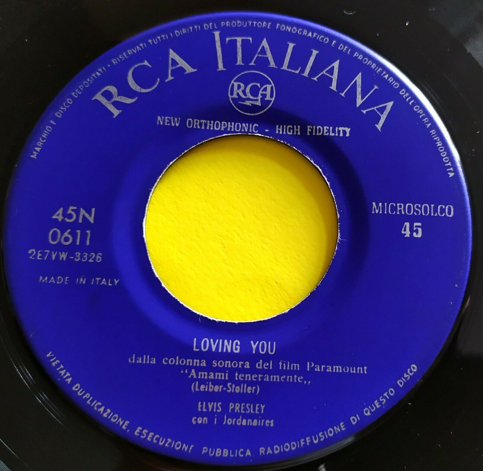 ELVIS PRESLEY (45 RPM - ITALY) 45N 0611 "LOVING YOU" (RARE COVER) BLUE LABEL