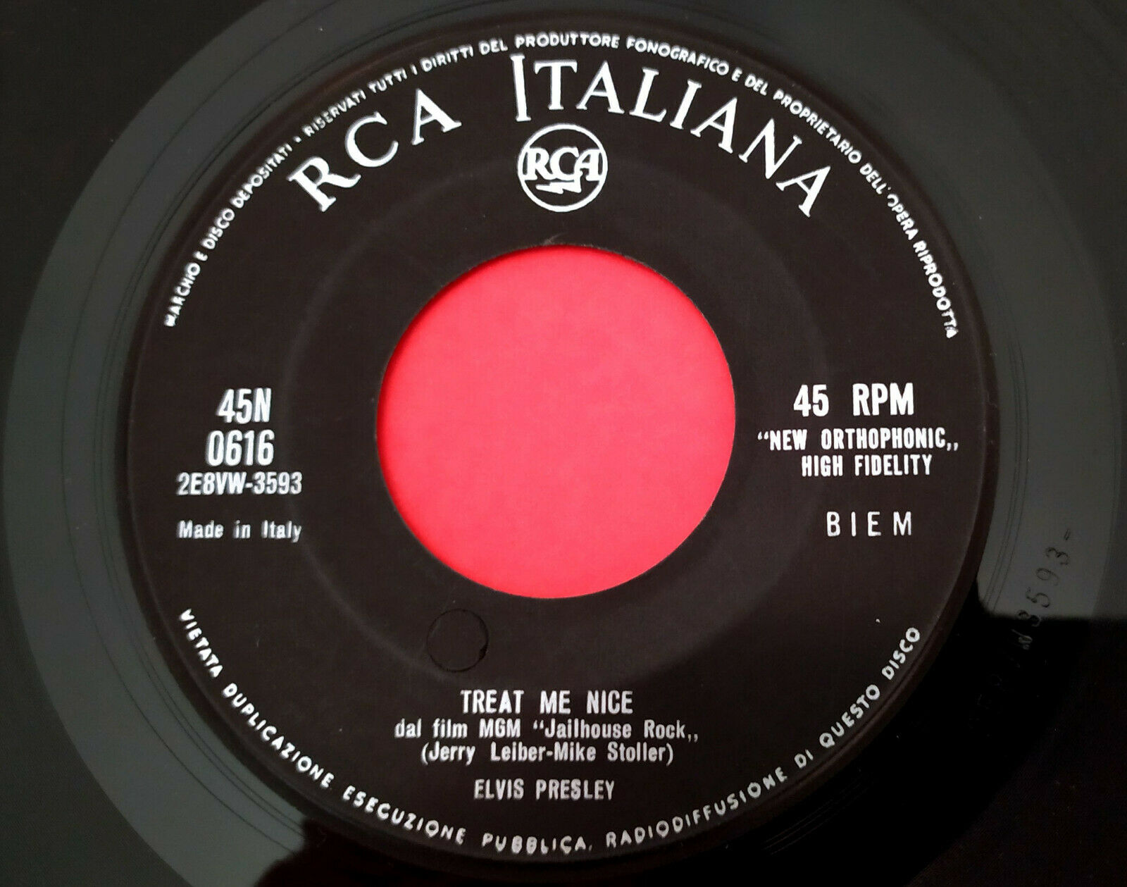 ELVIS PRESLEY (7" ITALY) 45N 0616 "TREAT ME NICE" SKYLINE COVER (RARE 1000 COPY)