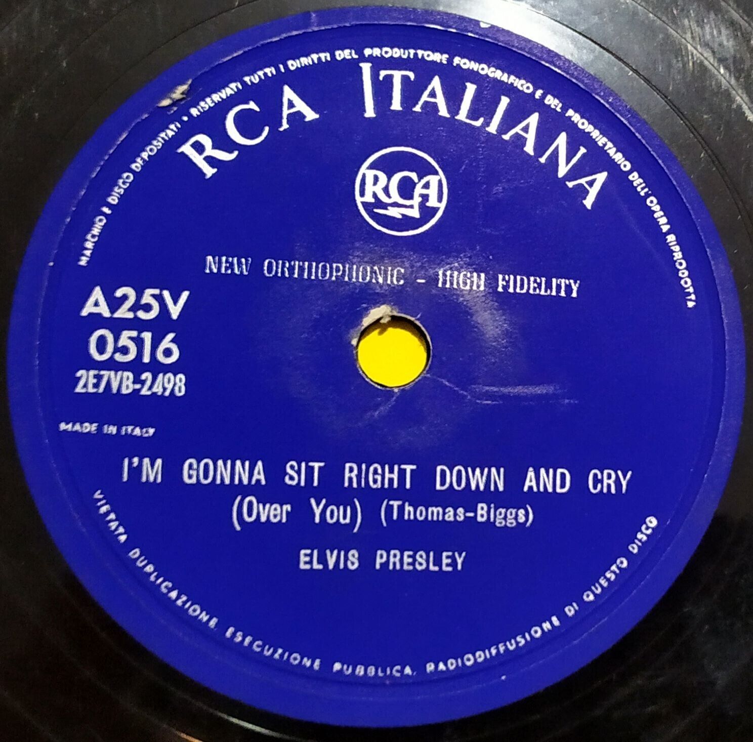 SUPER RARE AND "NO-EXISTENT" ITALIAN 78. NEVER LISTED IN ANY BOOK OR GUIDE. THIS RECORD HAS NEVER BEEN ISSUED BY RCA ITALIANA IN 1956 AND NO ONE KNOWS ABOUT IT, UNTIL NOW ! THIS IS THE NOVEMBER 1957 PRESSING ON BLUE LABEL AND, OF COURSE, IT IS CONSIDERED THE FIRST AND UNIQUE PRESSING. A MONSTER !!!