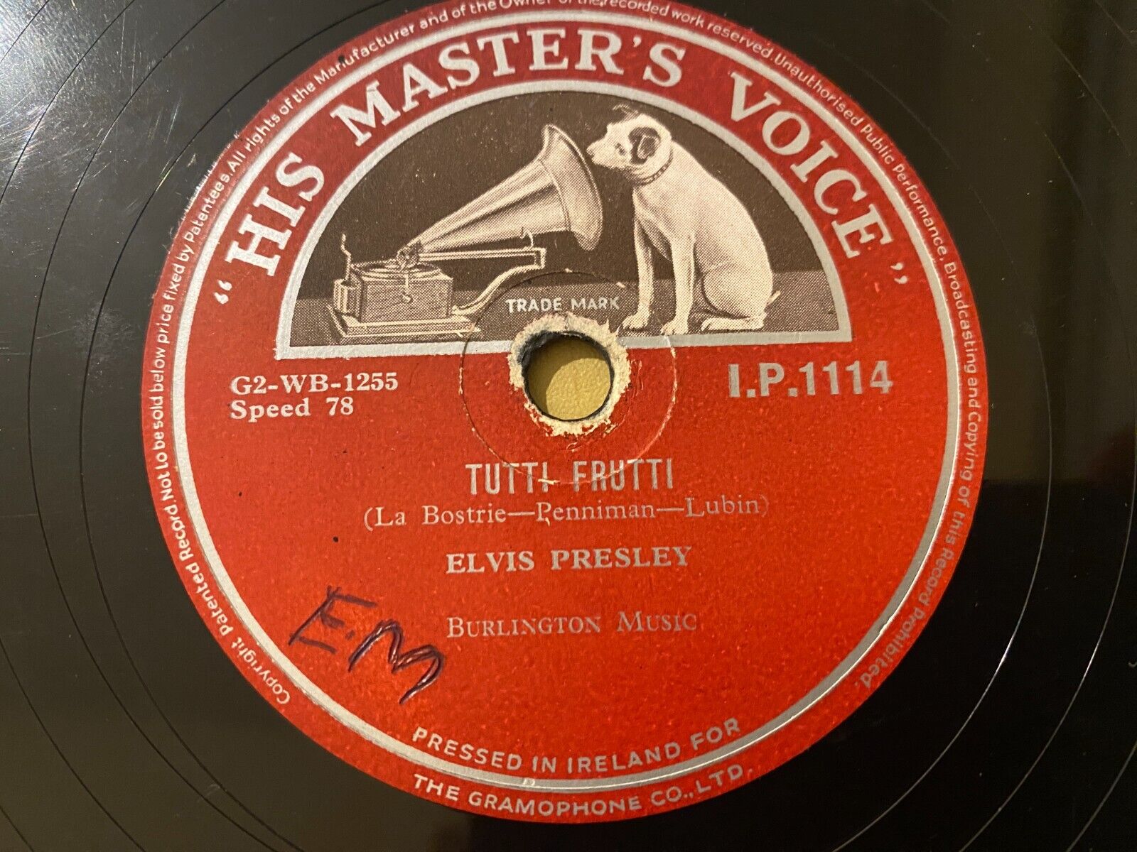 ELVIS PRESLEY - Blue Suede Shoes - RARE IRISH PRESS RED LABEL 78 RPM HMV IRELAND