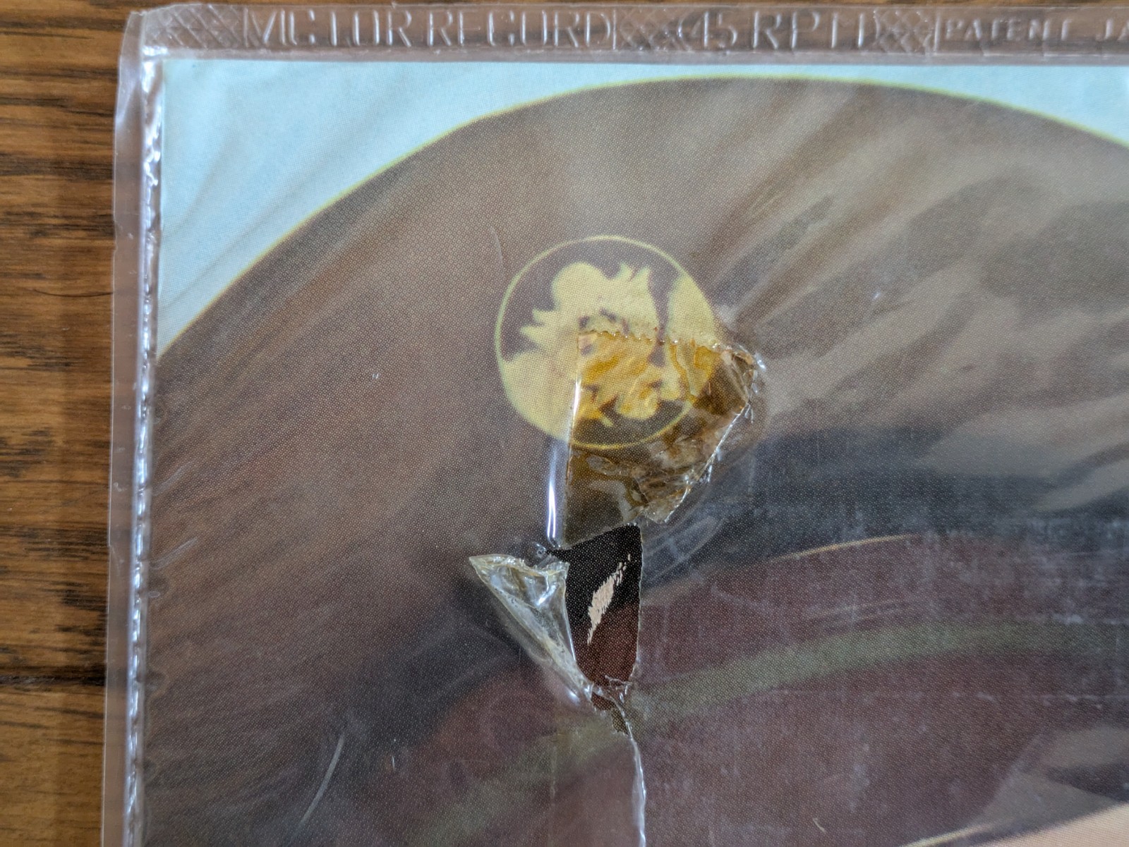 Sleeve is in VG+ condition.(Torn,a tag with tape and writings on the poly-lined sleeve.)