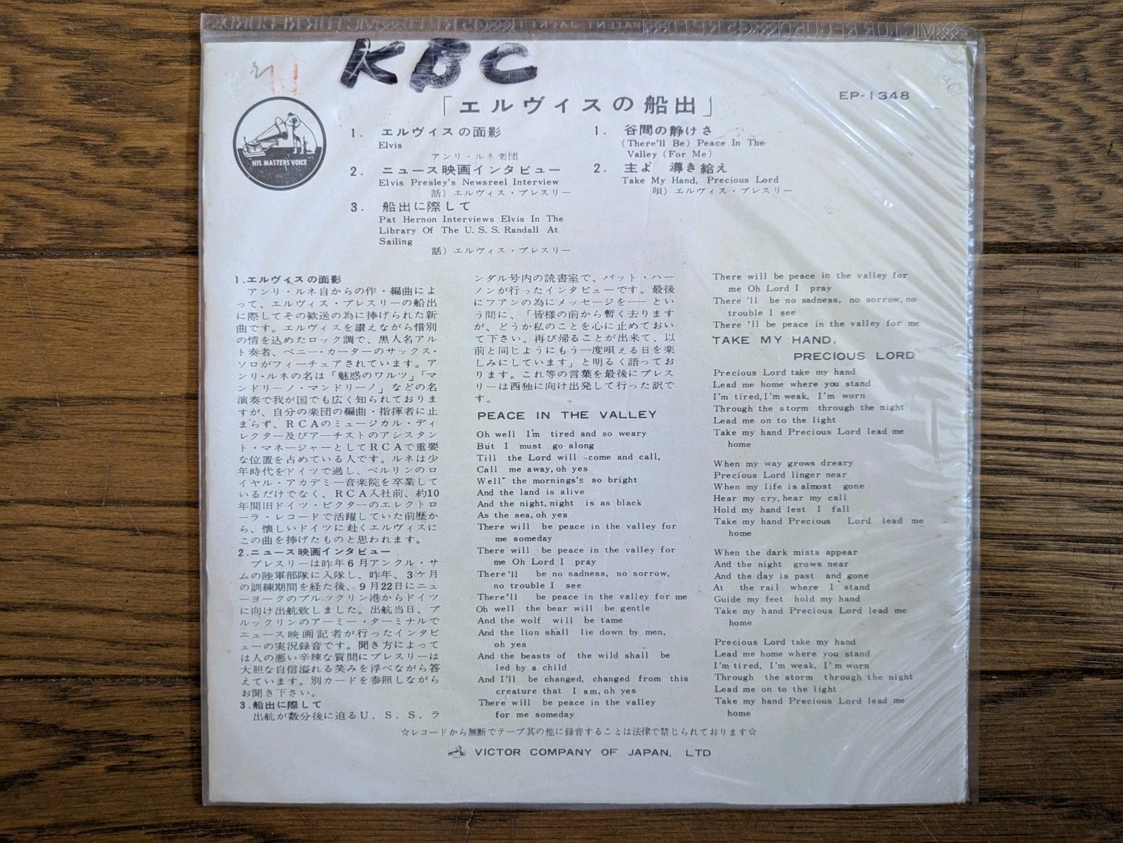 ELVIS PRESLEY Elvis Sails 1959 Japan 45rpm EP EP-1348 Poly-Lined Sleeve