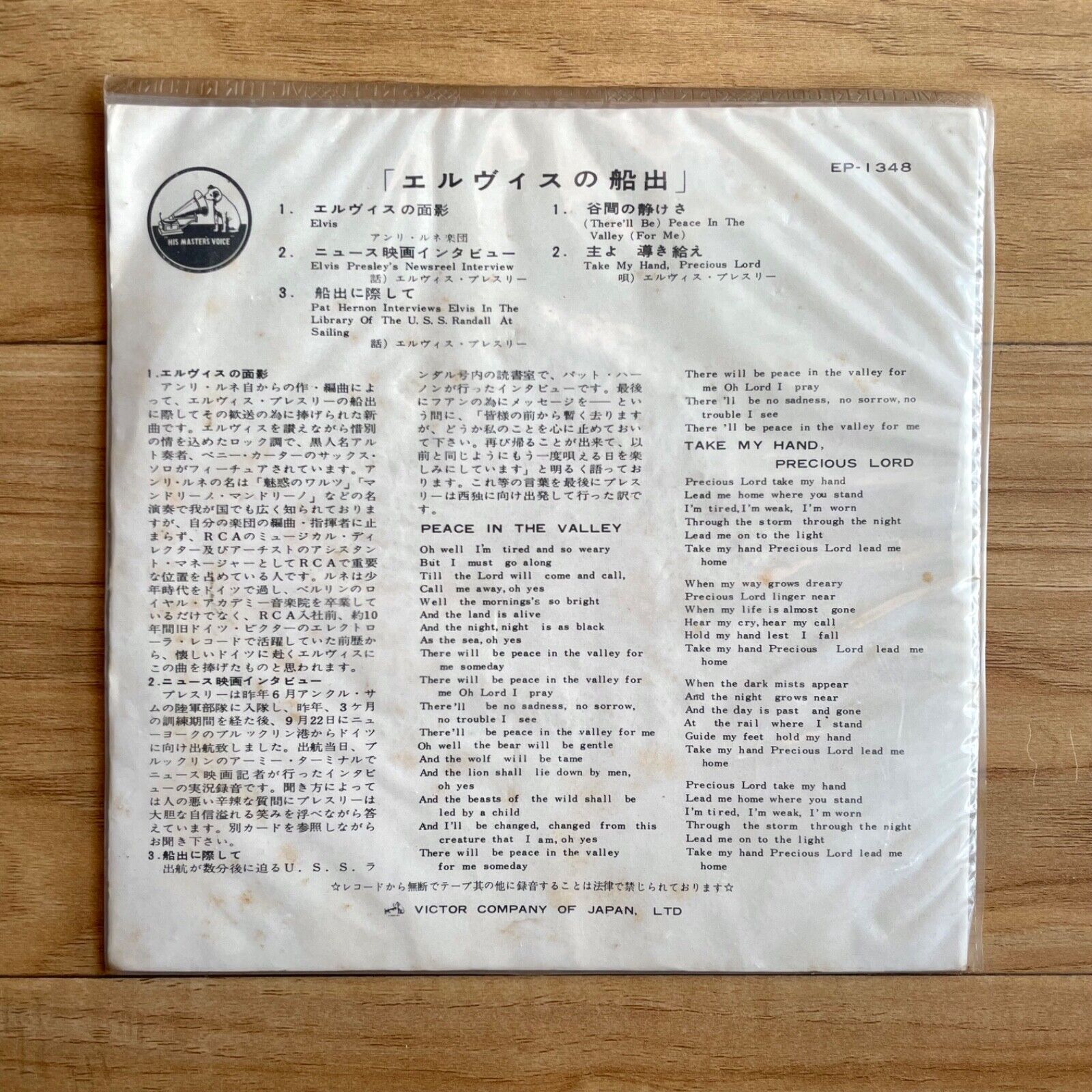 ELVIS PRESLEY Elvis Sails 1959 Japan EP EP-1348 Vinyl