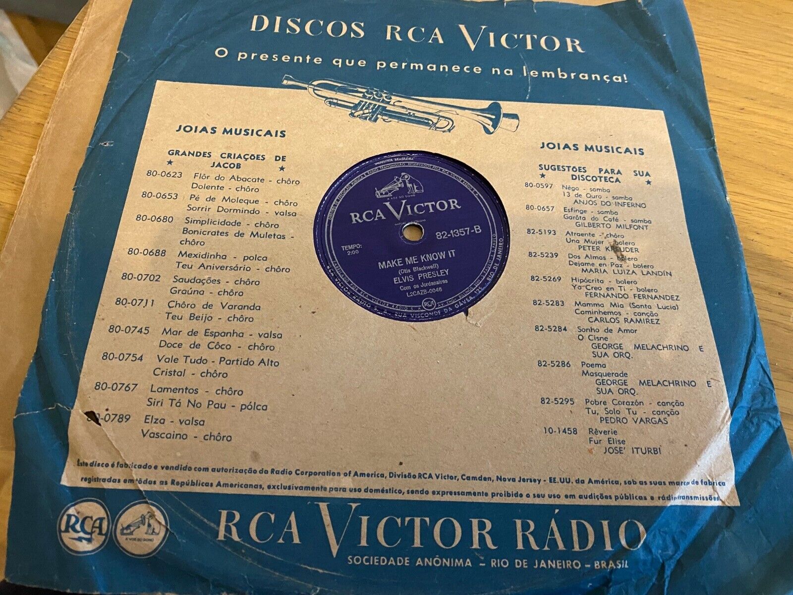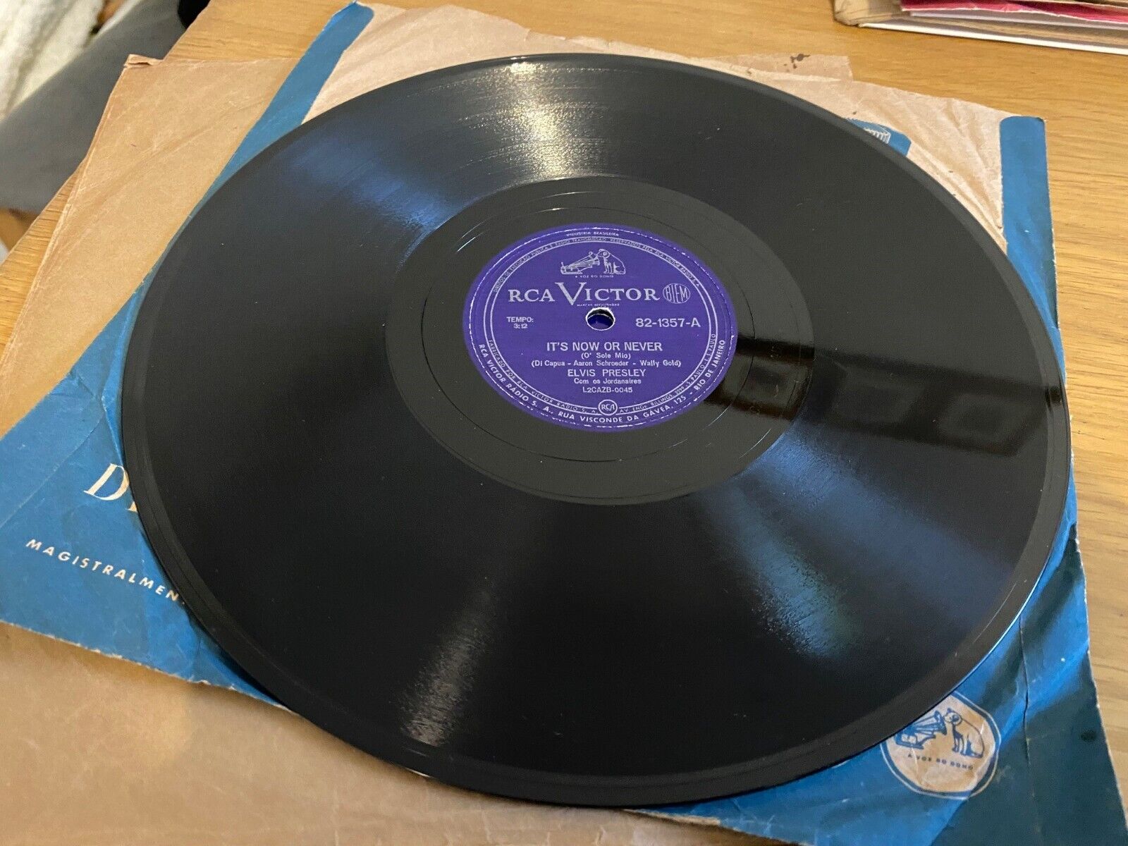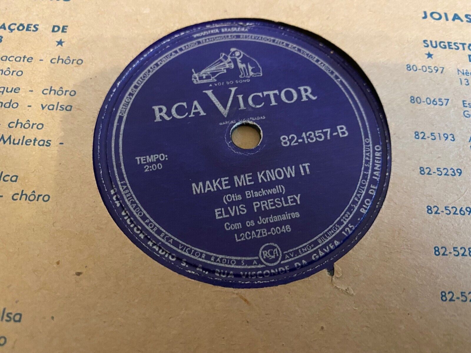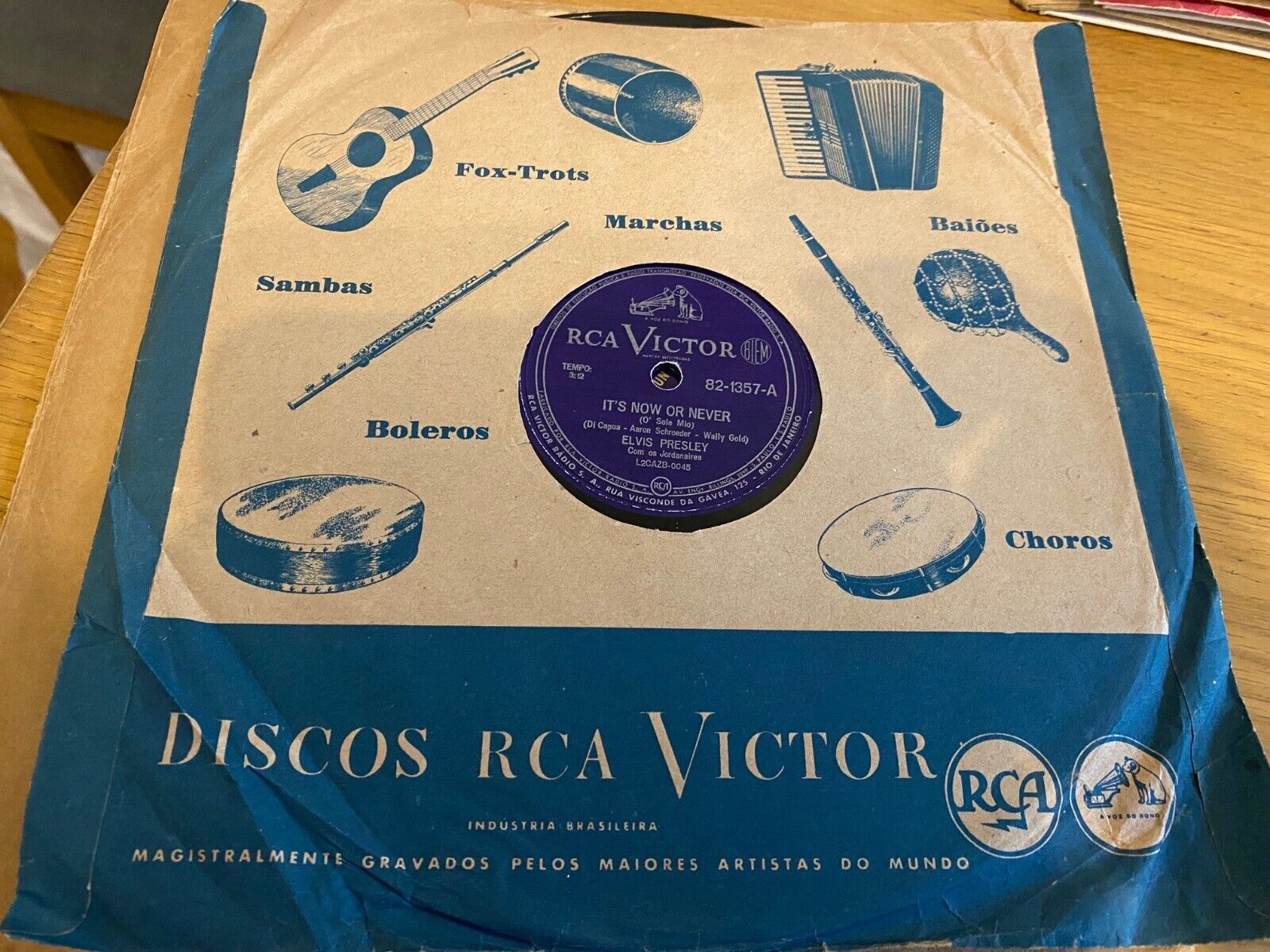 ELVIS PRESLEY with The Jordanaires : IT'S NOW OR NEVER (O' Sole Mio) / MAKE ME KNOW IT. Brazil. 78.rpm (1960) RCA Victor 82-1357. Vintage Brazilian Late Pressed Original 78.rpm Shellac Disc From 1960. Conservatively Graded In Excellent Minus Condition. Plays Fine Throughout. Do see my many other selections. Will combine postage for more discs where possible.