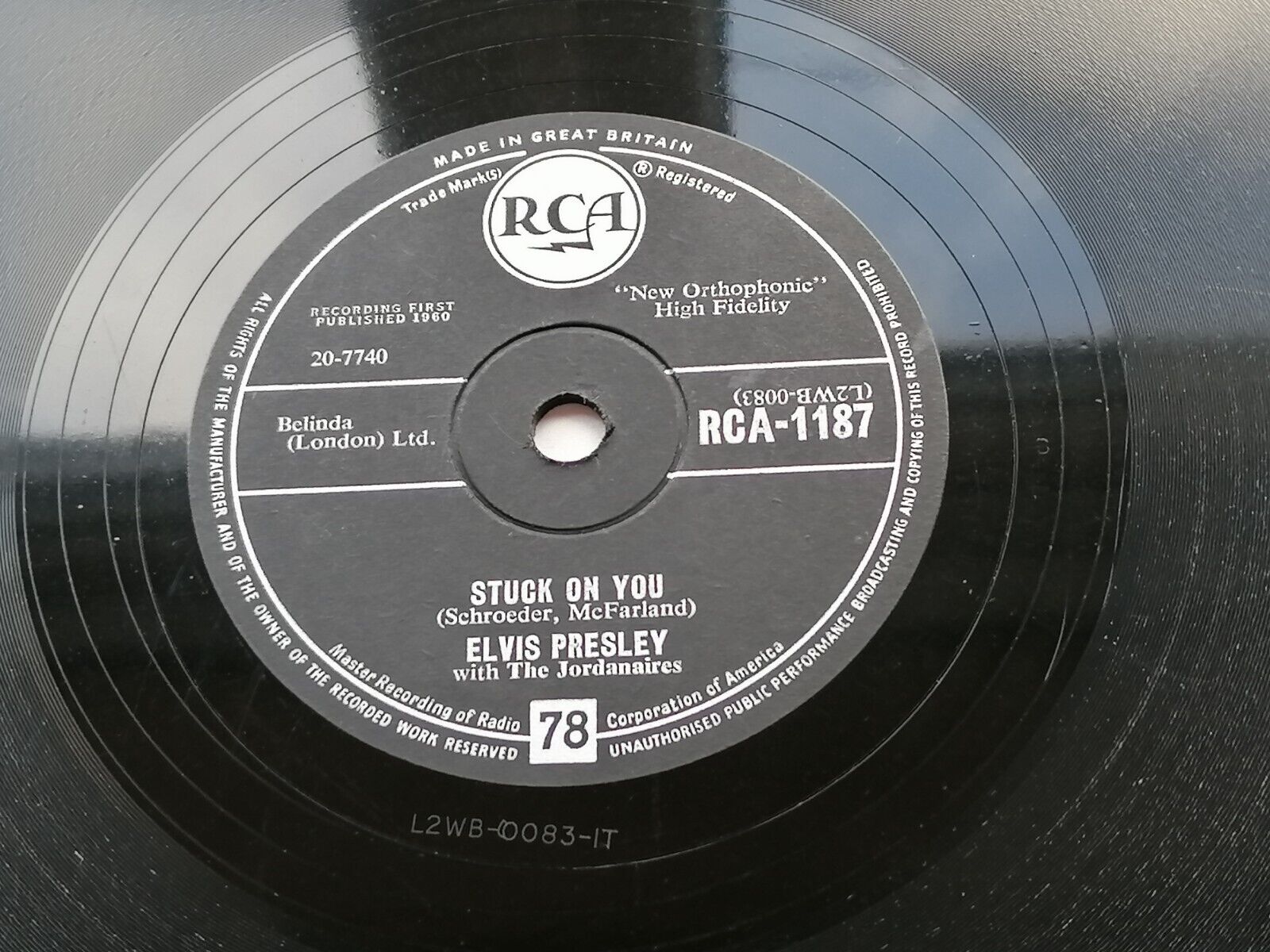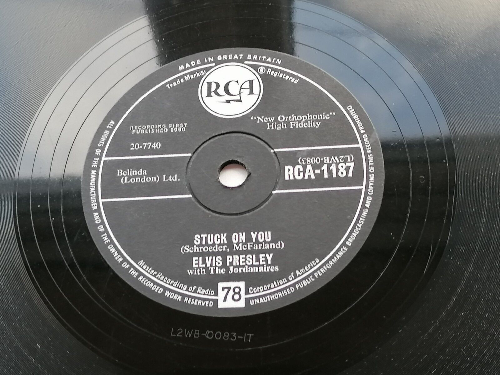 ELVIS PRESLEY ORIGINAL 1960 UK RCA 78 STUCK ON YOU EX