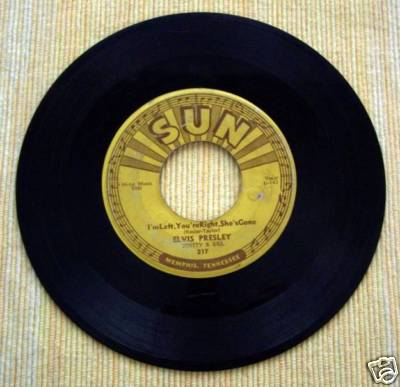 Sun record #217; Baby Let's Play House / I'm Left, You're Right, She's Gone; Original record; Has some light marks plays fine; Very little background noise; Sticker and small tape spot on one side; Remember this is from the 50's; Nice Early Rock and Roll Piece; Shipping US (first Class) 3.00; Insurance is available and encouraged along with various other shipping methods; I am not responsible for items lost or damaged in the mail and I will not refund for items lost or damaged in mail; Non-payers will receive unpleasant feedback.