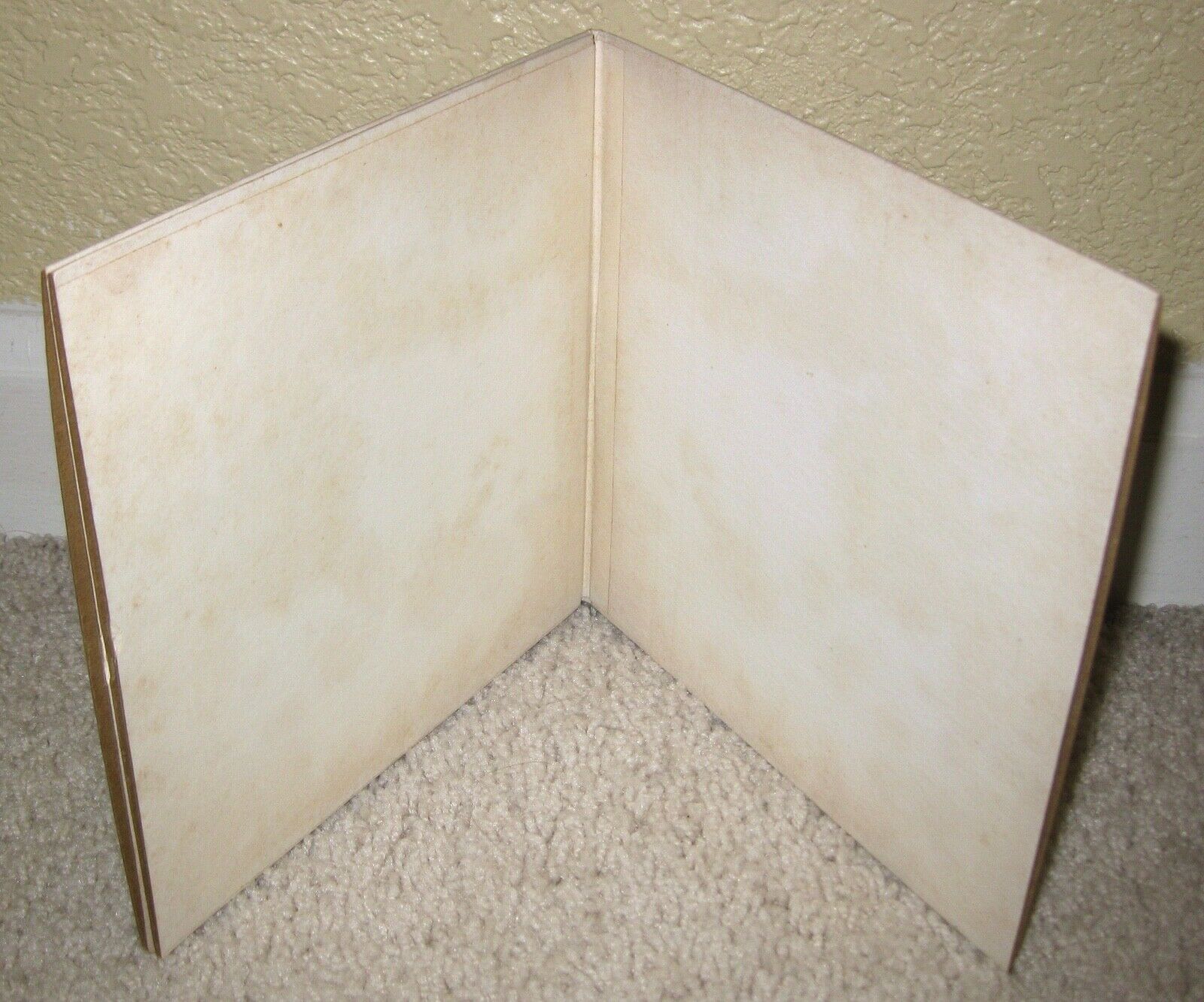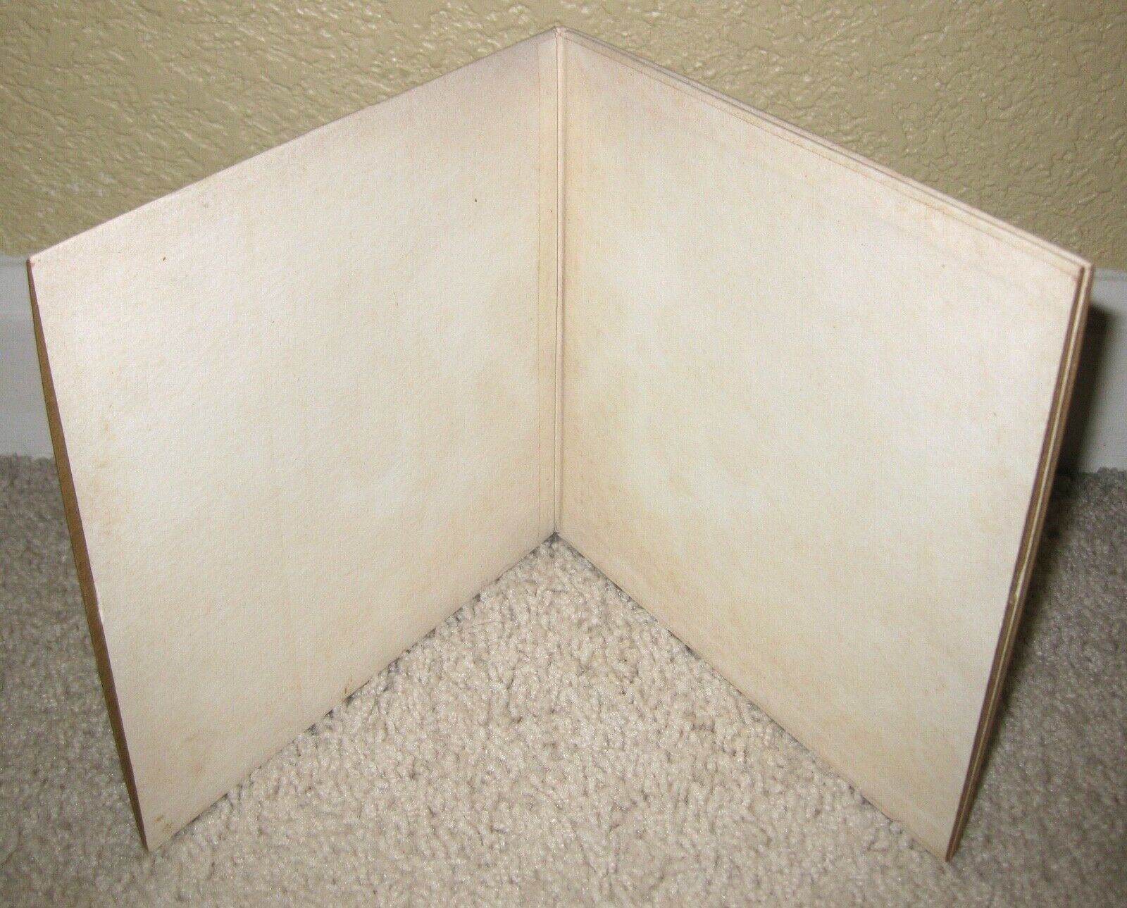 The gatefold cover is a sharp, bright and attractive VG+ and it displays very nicely overall!! There is one little (one-inch) 'pressure split' at the middle of the top edge of the front record pocket only and a very tiny (half-inch) 'pressure split' at the middle of the bottom edge of the front record pocket only as well. There is also just a little very slight age 'toning/foxing' to the two inner (blank white) portions of the gatefold and on the back side as well. All things considered, this is a very nice-looking cover overall and certainly much better than many I've seen offered over the years!!