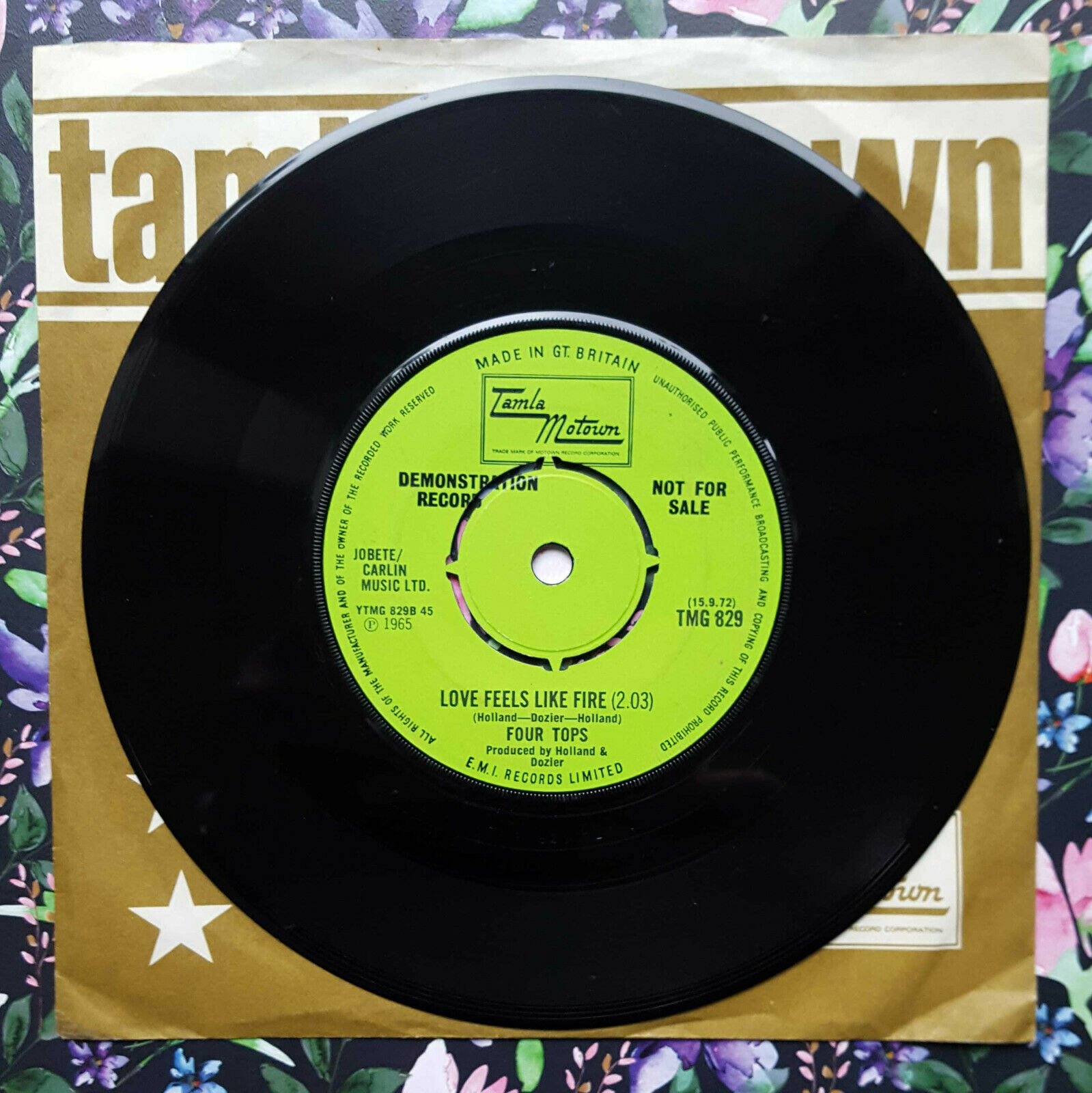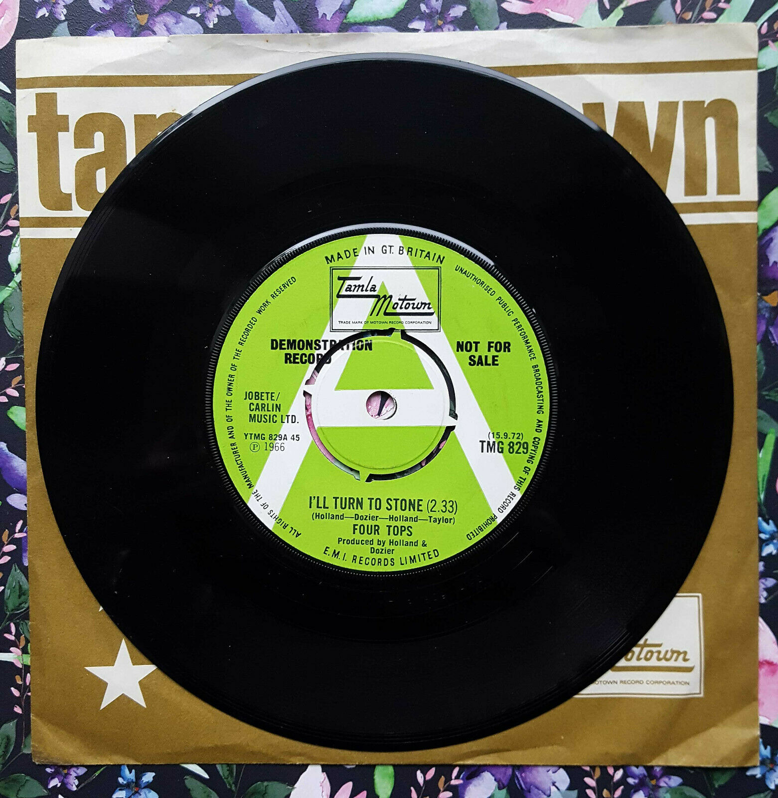 FOUR TOPS - I'll Turn to Stone / Love Feels Like Fire - 1972 UK DEMO 45 - TAMLA MOTOWN TMG 829.