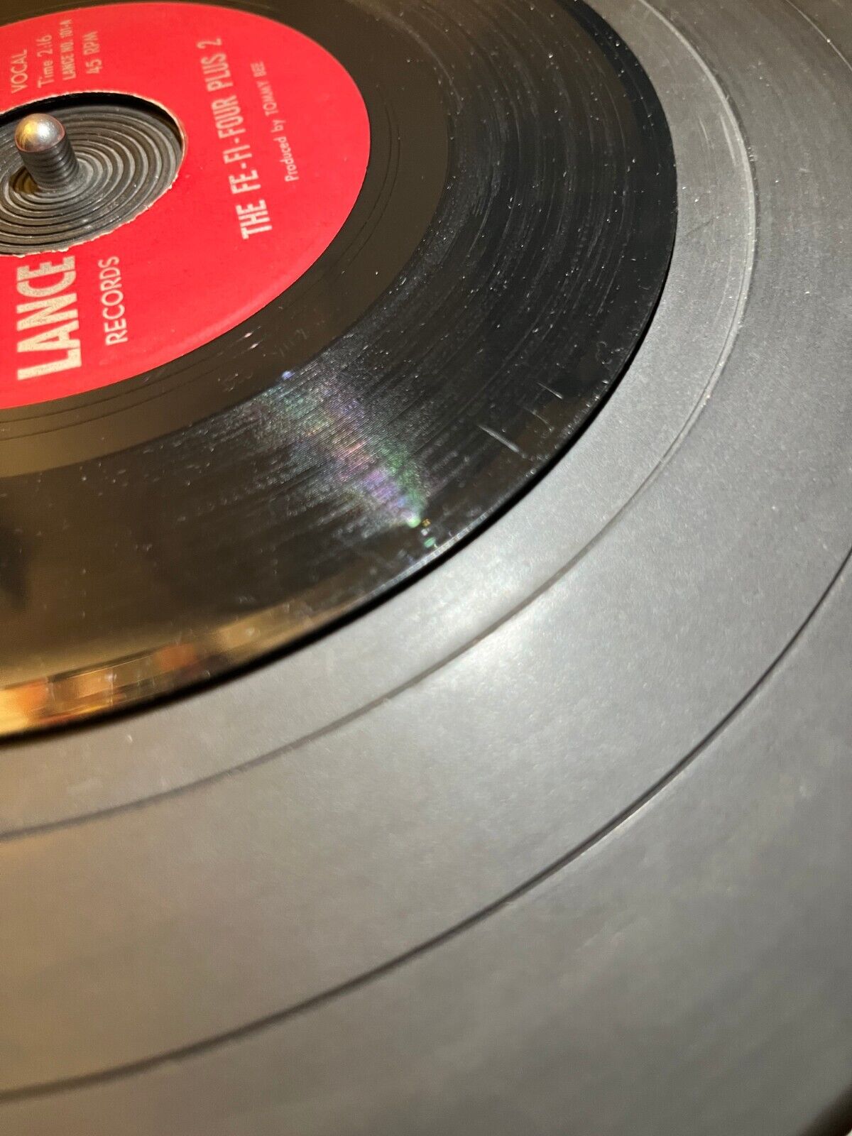 1. There are surface scratches on the lead in of Double Crossin' Girl, but are not audible (see photo). I would attribute these to years of poor storage before I received the record.