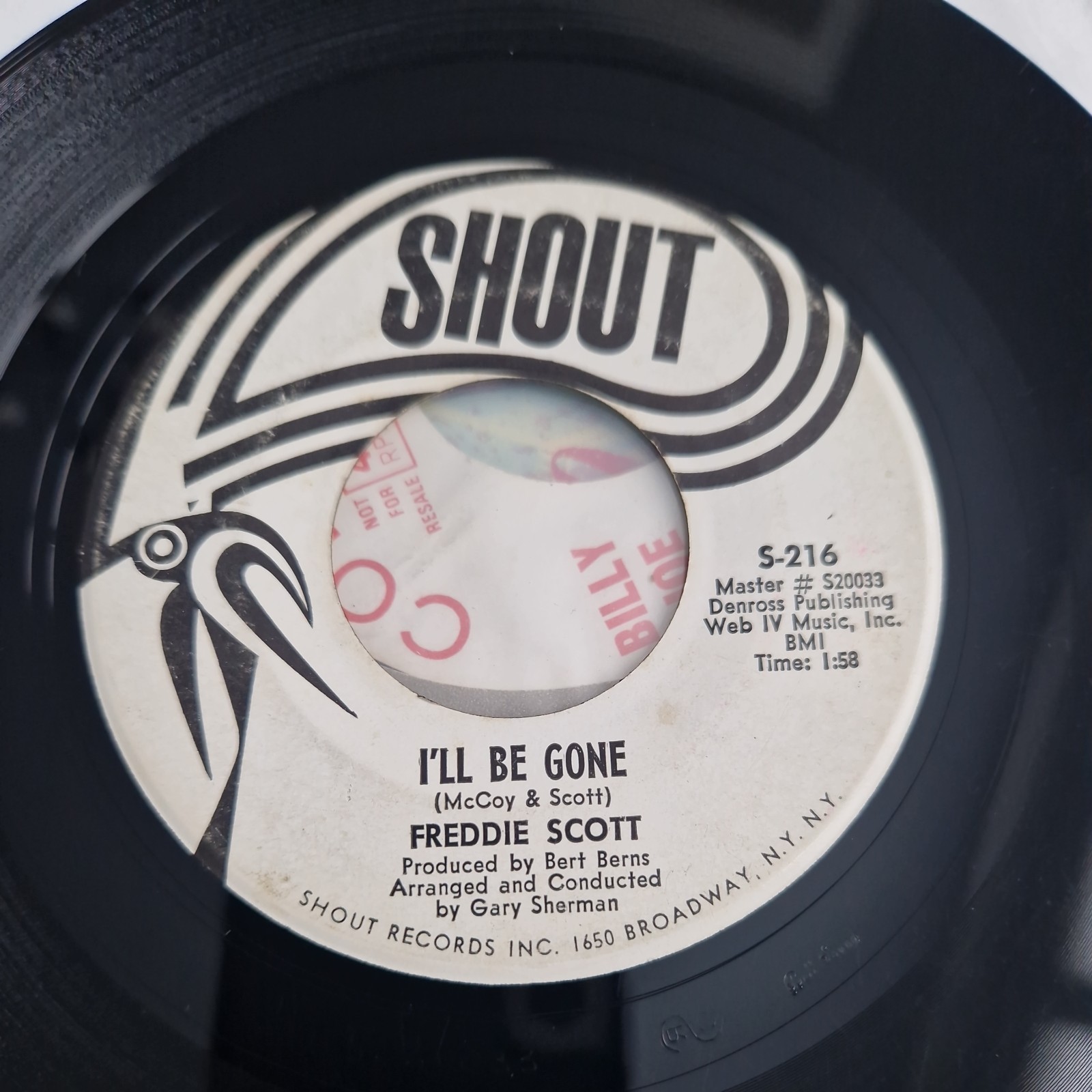 Freddie Scott/I'Ll Be Gone - He Will Break Your Heart Shout S-216 45 7" PROMO