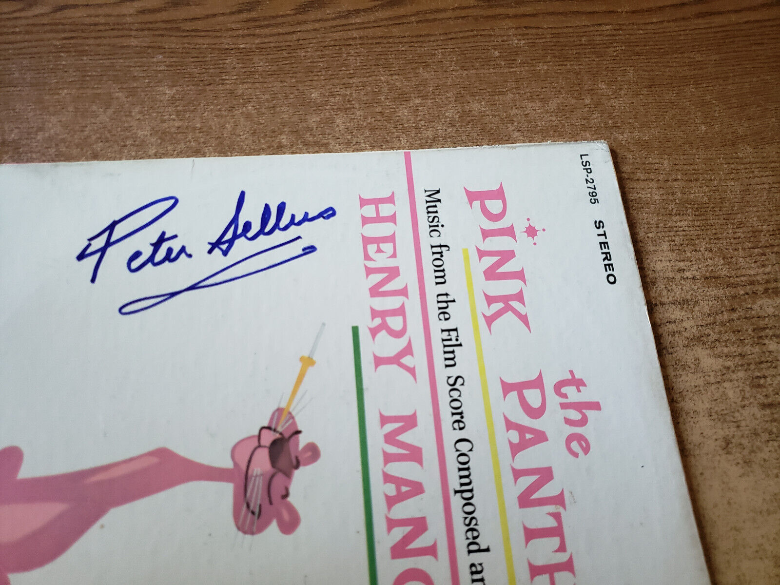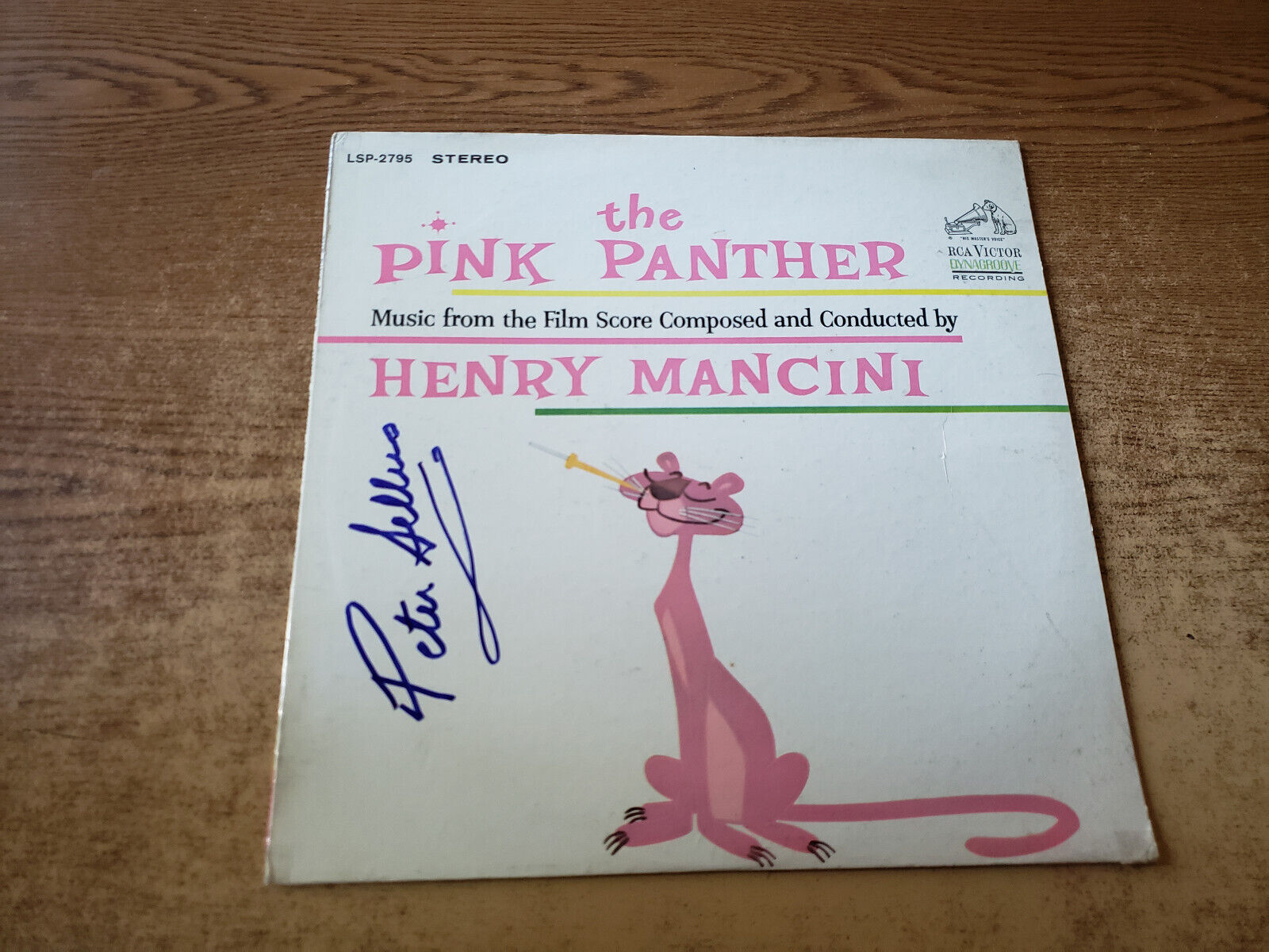 GENUINE SIGNED PETER SELLERS 1960s VG+ Henry Mancini Pink Panther MOVIETRACK LP33 small one inch piece of pro record store 1/2 wide invisible tape only on bottom right seam near mouth not that noticeable .....1ST PRESSING! RARE! CHEAP INTERNATIONAL SHIPPING! NO HIGH priced SHIPPING!!! 12" COMBINED SHIP 80% OFF EXTRA RECORDS. (BUY a few 45s, 1 FREE see sales rules), EBAY'S #1 RECORD STORE!! NEW GENERIC sleeve(s) FREE. I ACCEPT ALL CURRENCIES (((any ebay checkout problems I TAKE CARE OF))) QUESTIONS? EMAIL ME.