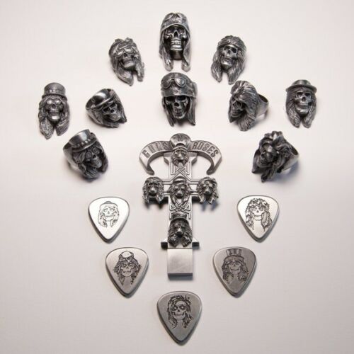 The Appetite For Destruction: Locked N’ Loaded box is the one true GN’R Holy Grail. The box includes the Super Deluxe Edition with 4CDs featuring the album newly remastered for the first time ever; B-sides N’ EPs newly remastered; the previously unreleased 1986 Sound City Session N’ More recordings; a Blu-ray Audio disc with the album, bonus tracks and music videos in brand new 5.1 surround sound along with the unearthed music video for “It’s So Easy” originally shot in 1989 but never finished; and a 96-page hardcover book showcasing unseen photos from Axl Rose’s personal archive and a wealth of memorabilia. In addition, the Locked N’ Loaded box contains high quality collectables including seven 12-inch 180g audiophile vinyl discs, a Hologroove Hologram of the GN'R logo, seven 7-inch singles on yellow vinyl, 12 lithos newly visualizing each song on Appetite, 5 custom hand-made metal-cast band skull face rings, 5 hand-made metal-cast band skull face lapel pins, buttons, patches, 3 replica concert tickets, 6 replica gig flyers, 5 metal skull face-stamped and signature-stamped guitar picks, a turntable mat, 2 wall posters, replica 27"x40" ‘85/’86 club days banner, a Robert Williams painting litho, 5 never-before-seen band lithos, a 32gb solid metal cross USB stick (with 192kHz 24-bit, 96kHz 24-bit, 44.1kHz 16-bit digital audio), a micro-fiber vinyl cleaning cloth, 7-inch large hole adapter, 2-inch collectable coin, 6 iron-on logo patches, bandana with silver metallic ink, replica "Welcome To The Jungle video invite flyer, 5 logo buttons, a numbered certificate of authenticity.
