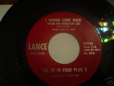 Legendary local New Mexico garage psych 45 on the Lance label(NO#)by the Fe-Fi-Four Plus 2. Cuts are "I Wanna Come Back(From The World Of LSD)" backed by "Double Crossin' Girl". Labels are Mint- and Vinyl is VG+ with a couple of very light paper scuffs. Really nice copy of stupidly rare 45.