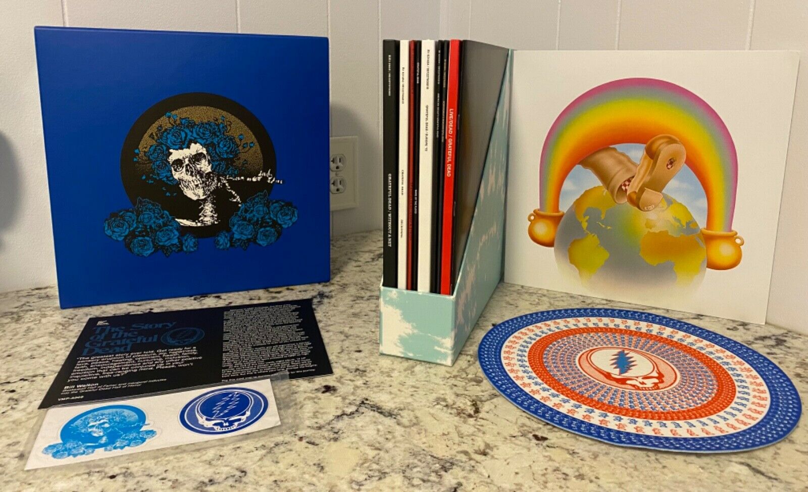 Mint Unplayed numbered copy, 1690 / 2500, of Vinyl Me Please Anthology, VMP A006, The Story of the Grateful Dead. 8 albums 13 colored 180 gram vinyl LPs Set has sat on shelf since opening and meticulously inspecting upon arriving last year. All OG contents included. Stickers, slip mat, QR card. Noticed that Europe 72 cover was bent. Contacted VMP and they promptly rectified. New cover was sent & mint LPs from original bent cover were transferred. (I’m keeping the extra damaged Europe 72 cover) See pictures. All covers are Mint & LPs Unplayed. I have all the original albums included or multiple reissues. Purchase out of Deadhead obsessive compulsive completist syndrome. Only defect is tiny split on inner LP holder box where LP spines are visible. Looks to be easily repairable / glued. I only noticed when photographing for listing today. Would repair myself if not selling. Wouldn’t be selling if not for financial albatross caused in wake of my wife and & mother of our 2 daughters leaving us without notice a few months ago. Worst part of the deal is that I spent the last 14 months trying to help her get treatment for obvious mental health issues that manifested during the covid lockdown last year. She refused any and all professional help and prescribed medication. I digress but she went from making a great salary with benefits to nothing & had easily over 10k in personal credit card debit I was unaware of until her mental health issues became apparent. After dealing with all that, for better or for worse right?, and trying to get her back to person I knew ..she bailed ..then drained what remained in the joint account we shared. Sorry for the tale of woe. Only sharing to shed light on circumstances necessitating selling this set. Have to keep it together for sake of my Daughters. We will get by. At any rate I will be listing a plethora of rare Grateful Dead LPs, Box Sets, CD sets etc.. Will also be a bunch of primo sealed or lightly used Soul, Funk, Rock, Alternative LPs as I get time to list. Keep lids peeled. Thanks for checking out this listing. Ready to go as pictured. Will be further fortified or double boxed to ensure safe transit to new owner. Purchase price includes Priority Mail shipping with $775 value insurance. Will arrive quickly as described / pictured. Please see my 100% seller & buyer feedback since 2003. Check out feedback from recent sales of high value sets like this with specific mentions regarding security of packages, speedy delivery & most importantly accuracy of item description. I know what exceptional service looks like from both sides.